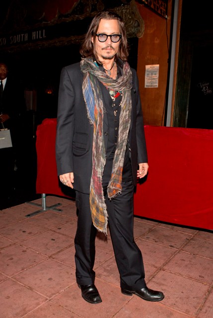 Elton John threw a big party to celebrate husband David Furnish’s 50th birthday last night in LA. Johnny Depp showed up. And can you believe it? I think he maybe only wore 2 scarves. Just 2 and not 5!