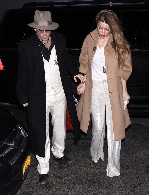 Attached -- Depp and fiancee in New York last night at the opening of Cabaret.