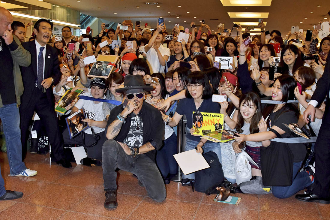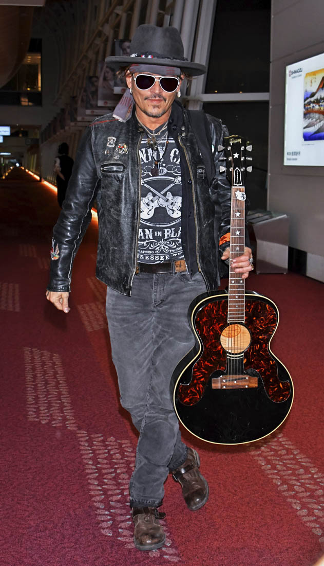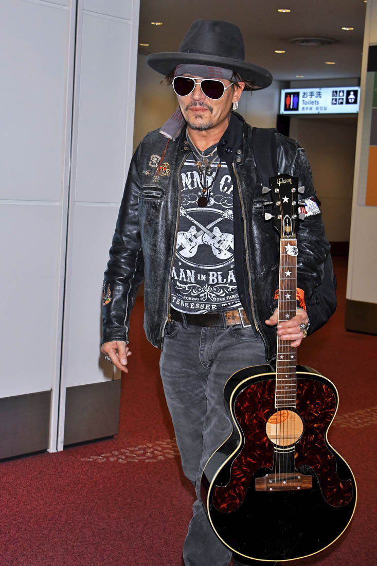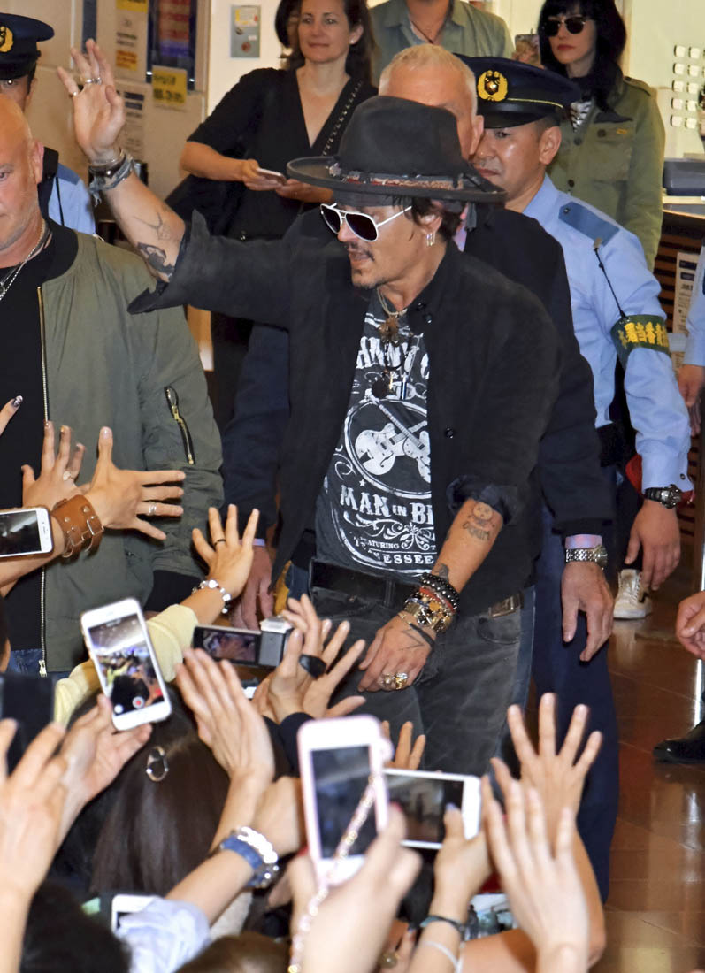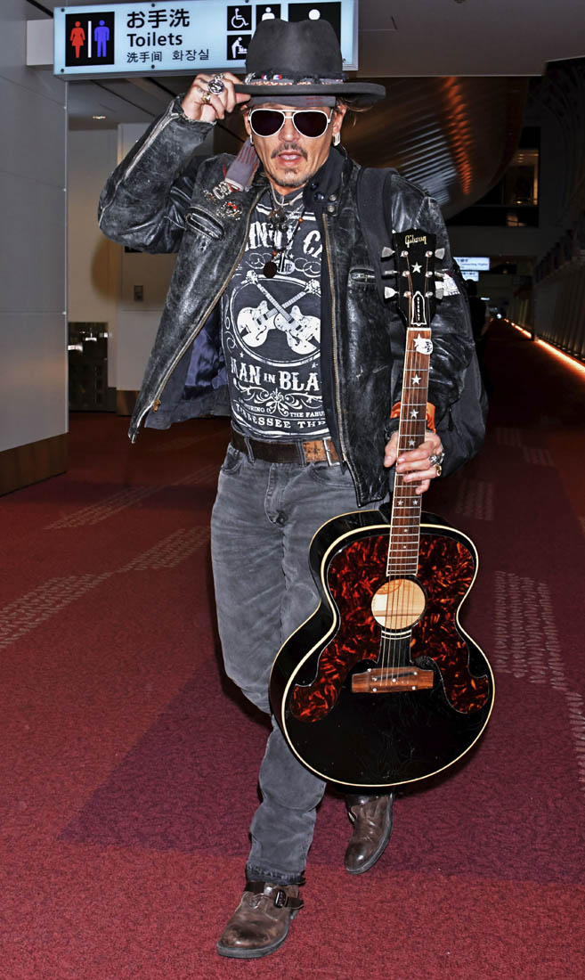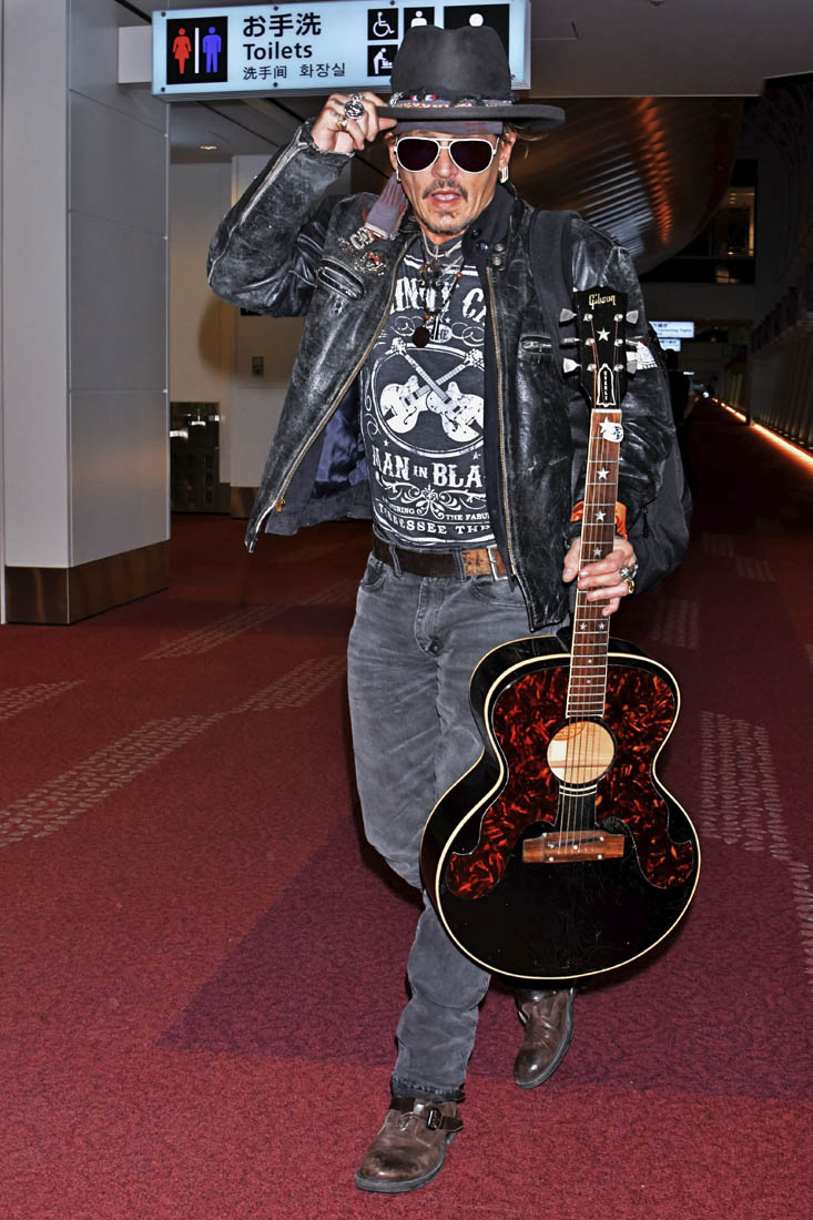 Attached - Johnny Depp arriving in Tokyo yesterday.