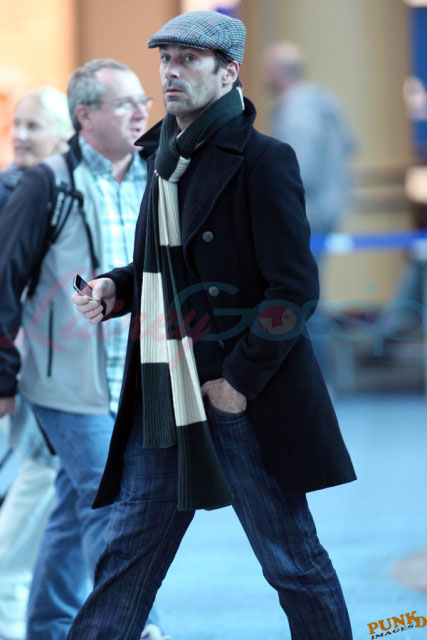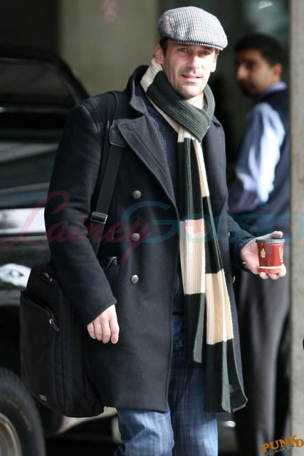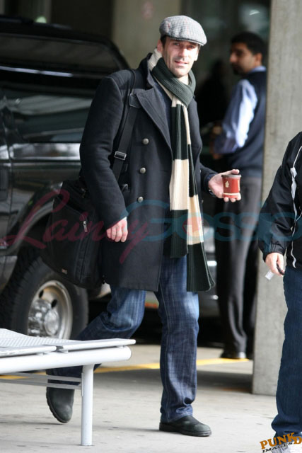 He arrived today, Don Draper aka Jon Hamm did. Very handsome. Picked up some Tim Hortons before hopping in the car, off to work here in Vancouver on Sucker Punch. It’s a small role. He’s called High Roller.