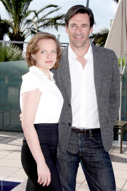 Anyway, Jon and Elisabeth are there to promote Mad Men at MIPCOM, being nice to all the money people who buy and distribute content. Very curious to know if he gets a part of that action, though it seems unlikely considering he was pretty much nobody when he signed on as Don Draper. And, um, at $100K an episode, which seems a lot to you and me, that’s actually considerably LESS than Kate Gosselin who earns $250K per. And that kid from Two and a Half Men? Yeah, he’s making more than Jon Hamm too.