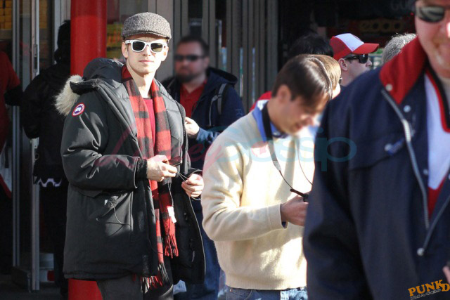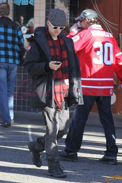 On Sunday, a Sunny afternoon, Hayden and Rachel went for a long walk around False Creek, up to the HBC Olympic store, did some shopping, before heading over to Canada vs USA at Hockey Place with Jon Hamm and his girlfriend. Hayden wore his Team Canada jersey and Rachel ate some fries. For real.