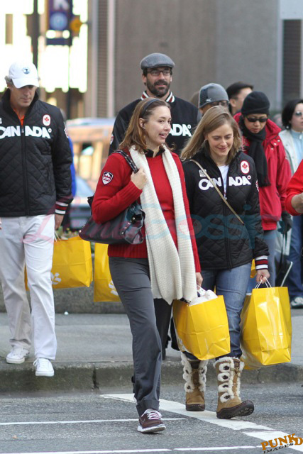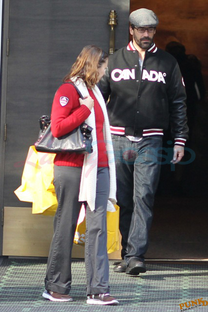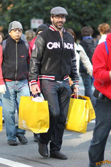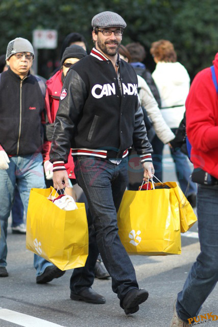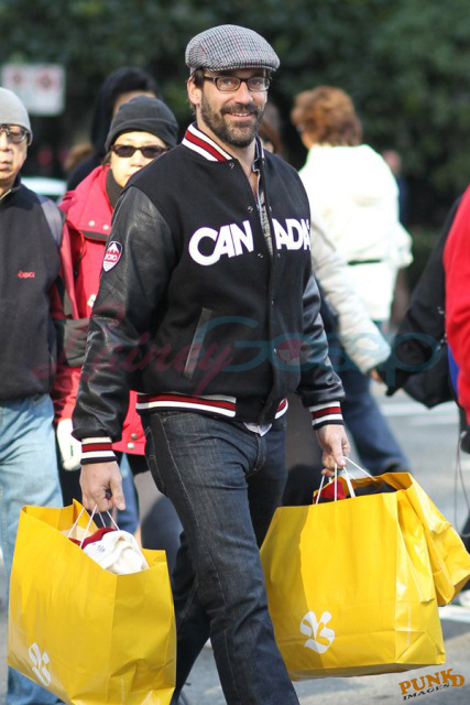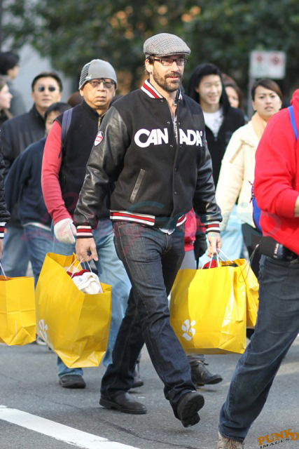 This is Jon Hamm leaving the HBC gifting suite today wearing Canada gear after loading up on Canada gear. As you probably know, the HBC red mittens were featured on Oprah last week, everyone is lining up around the block to get into the HBC store, many of you entered the sweater contest last week... HBC’s Olympic collection is an unprecedented success.