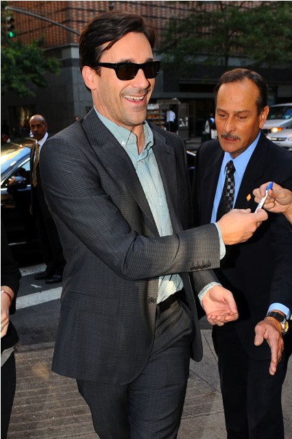 Jon Hamm spent the week promoting The Town. So he’s visible. And there are photos. And yesterday he was in New York, as handsome as ever, so how can I not post? The Town is currently the most well reviewed new release this week, impressively sitting at 91% on Rotten Tomatoes and a more moderate, but still strong, 76% on Metacritic. Yes, Ben Affleck makes good films. Are you seeing it this weekend?
