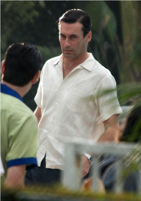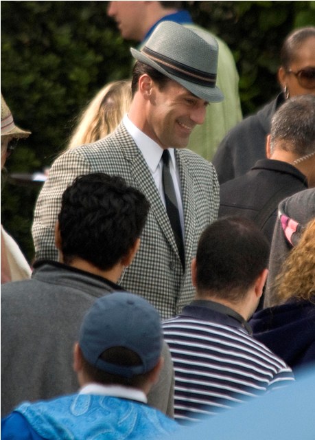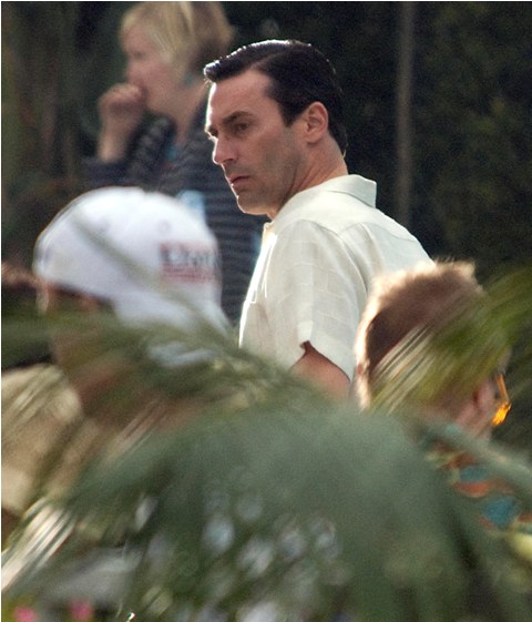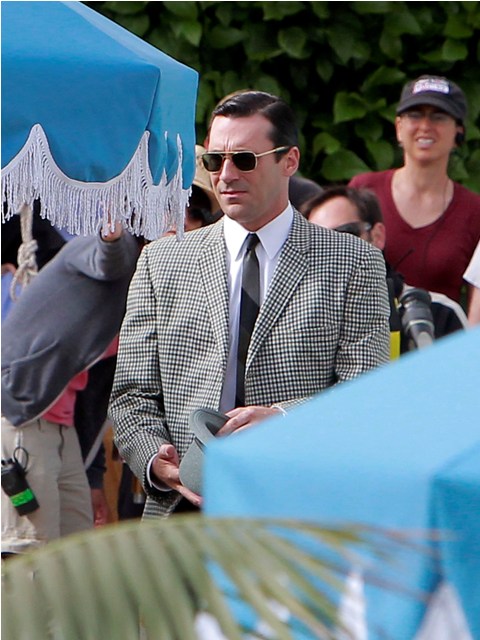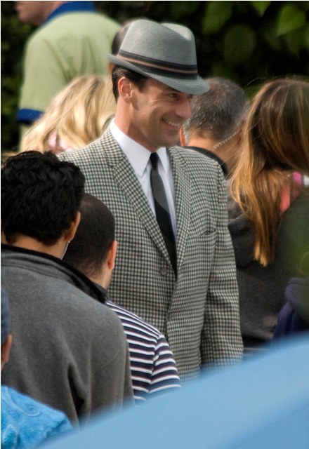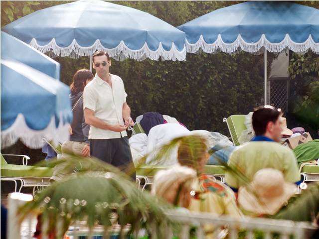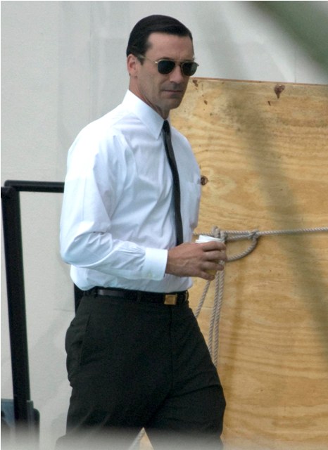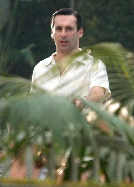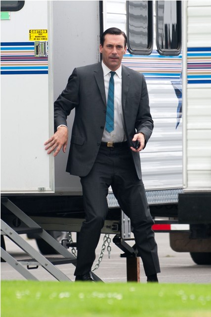 Hamm was on the set of Mad Men yesterday shooting by a pool, the unsmiling morose Don Draper, in several costume changes finishing up the final episodes of the season and SPOILER ALERT, maybe a new love interest. I don’t know why this would be a spoiler – it’s Don Draper after all – but I know some of you bitches lose your sh-t over inadvertent spoilers and I don’t want to be yelled at over Jon Hamm. Jon Hamm should only bring happiness. Like whenever I watch this video.