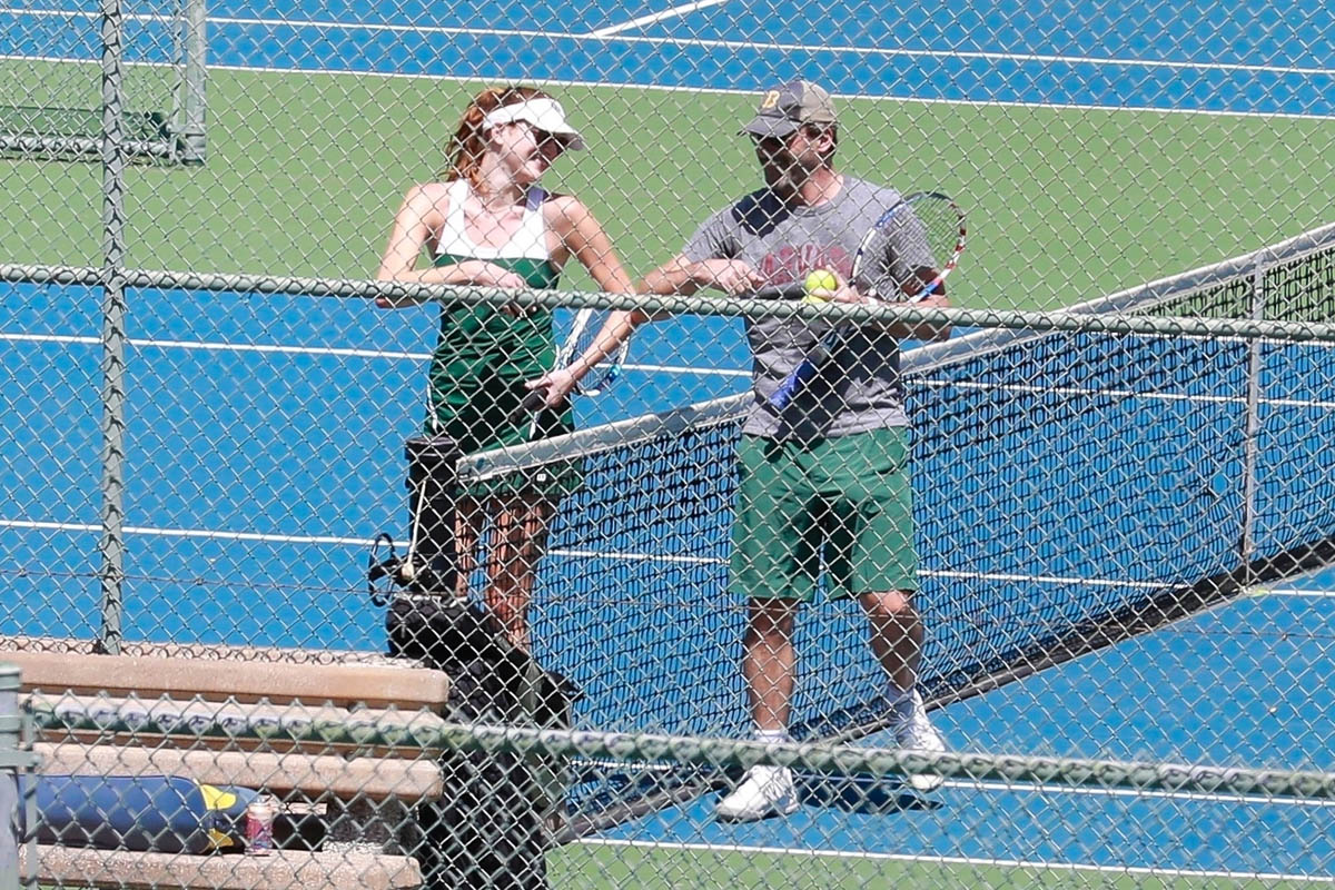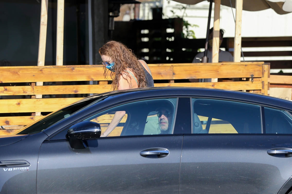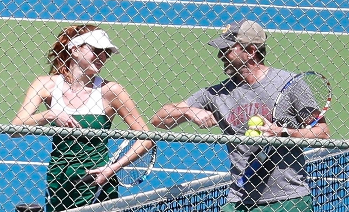 Here’s Jon Hamm this weekend playing tennis and getting takeout with actress Anna Osceola. Apparently there have been rumours that they’re dating for a while. Interestingly she was in the Mad Men finale as Clementine, the girl in braids. Jon and Jennifer Westfeldt announced their split about six months after that and I’m not saying that he and Anna have been together since then. But the speculation about them being together aren’t all that fresh either. Like at least three years, if not more. They just aren’t seen together very often.