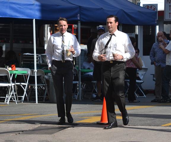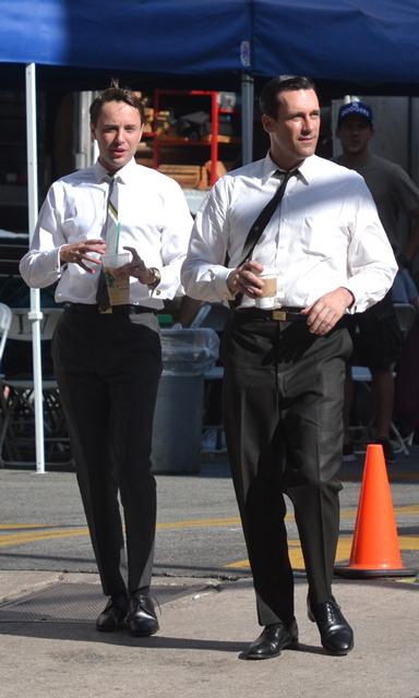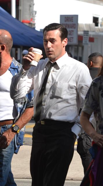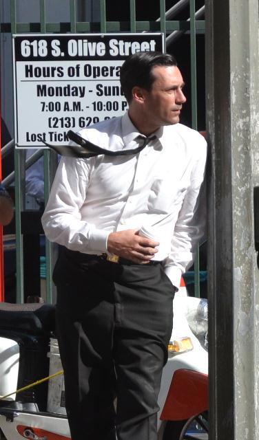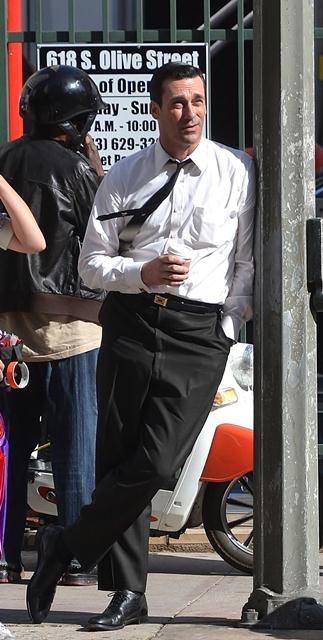 Jon Hamm was photographed yesterday on the set of Mad Men. Nothing to complain about here. Why complain about Don Draper.