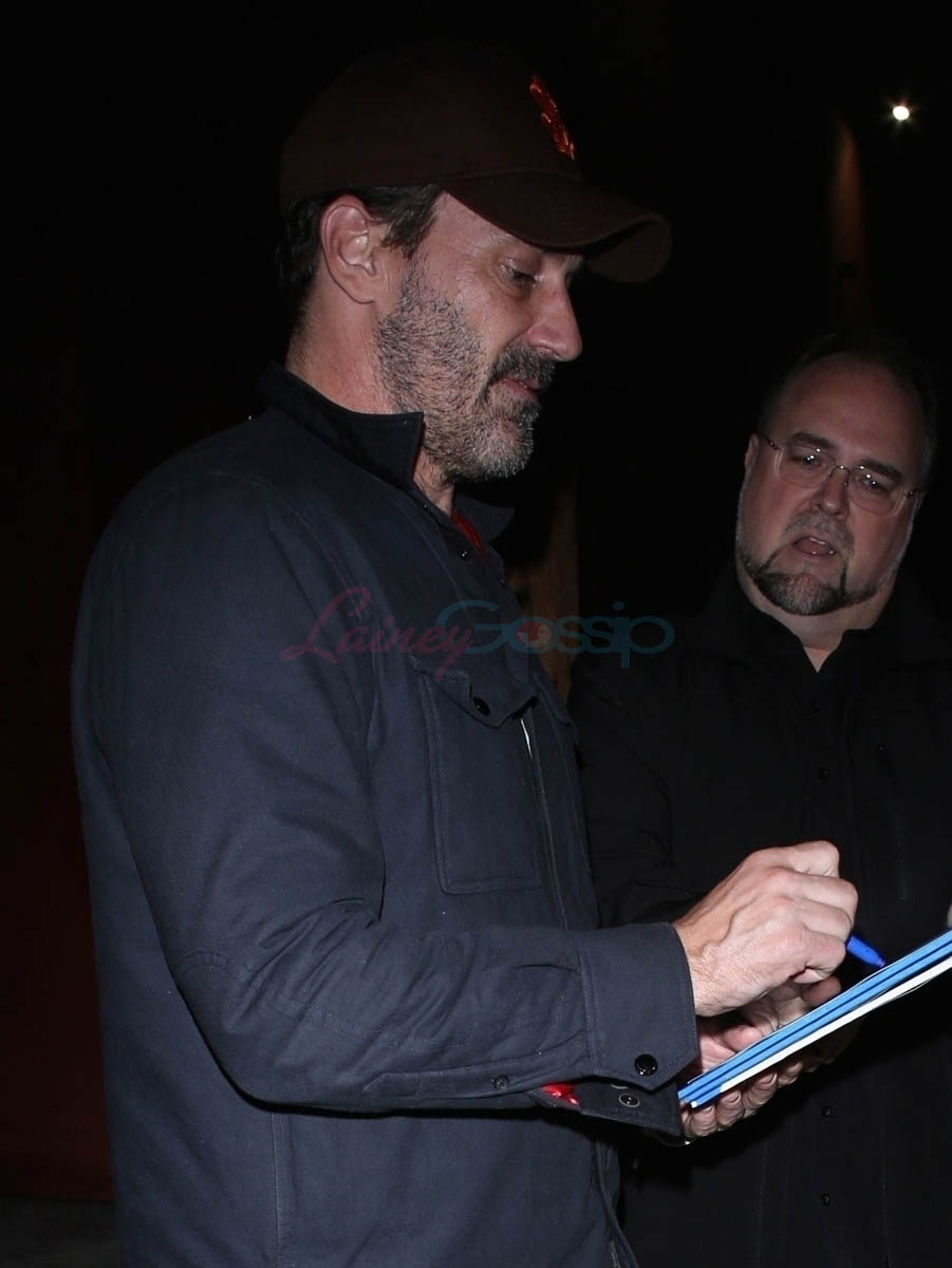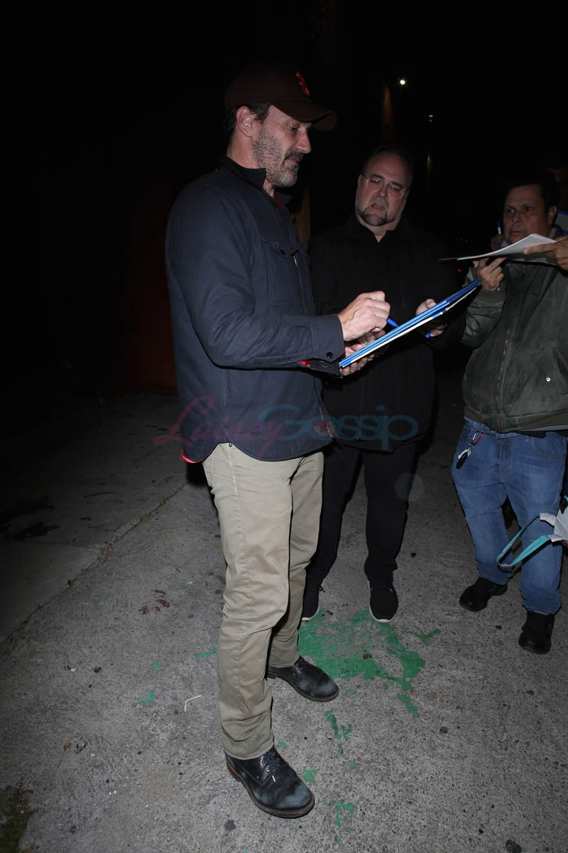 Mad Men concluded its run in 2015. At the Emmys that year, the expected favourite for Best Drama Actor was Jon Hamm. He’d never won up to that point and, well, it seemed like it was time, time for Don Draper to finally get up on stage. But there was a slim chance of an upset: Bob Odenkirk in Better Call Saul. Though Jon and Don ended up winning, the category was billed as a Jon vs Bob showdown and Bob even joked about it during an interview with Jimmy Kimmel a month before the Emmys. There were never any hard feelings. And the two are friends. Here’s Jon leaving the Largo last night in LA after seeing Bob’s show. Interestingly enough, Sarah Silverman was also there (not pictured). There were rumours a few months ago that Jon and Sarah have been hooking up. Gossip Cop shut it down at the time but… is this worth considering? Is there something there?