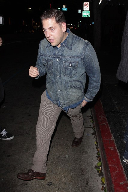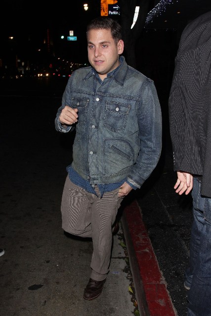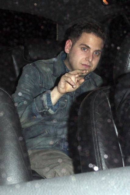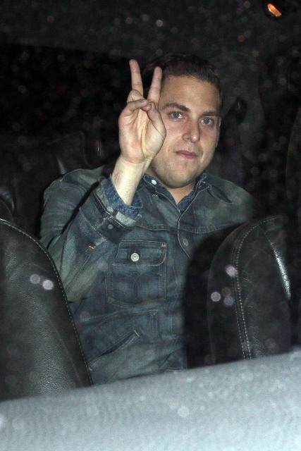 As you know, Jonah Hill being skinny was freaking me out. I wrote about it in relation to his “fu”, click here for a refresher. Jonah was out last night in Hollywood. Is it just me or has there been an improvement?