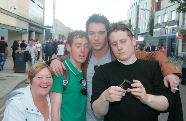 Jonathan Rhys Meyers celebrated his 32nd birthday yesterday at the U2 show in Dublin almost a month after he was arrested in Paris for pulling a Kiefer Sutherland style drunken rage on a waiter in an airport bar. He’ll appear in court in September.