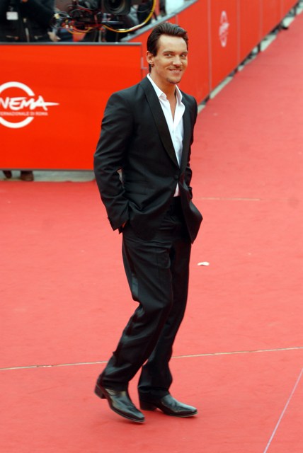 Jonathan Rhys Meyers is an excellent example. Here he is in Rome with his on off now on girlfriend at the premiere of August Rush looking bat sh-t crazy with his psycho eyes and that lame ass excuse for a goatee growing randomly about his face.