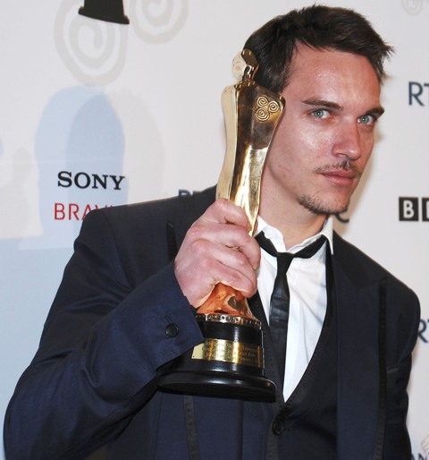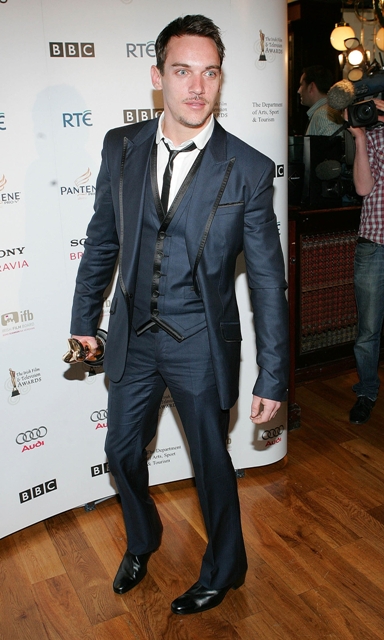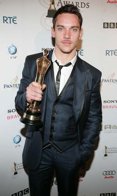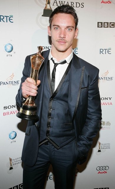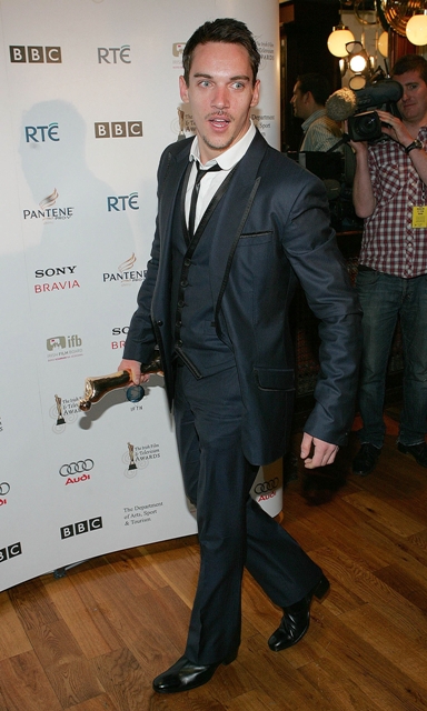 Jonathan Rhys Meyers winning Best Actor in a Lead Television Role at the Irish Film and TV Awards with his girlfriend Rheena Hammer.