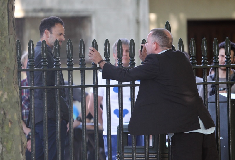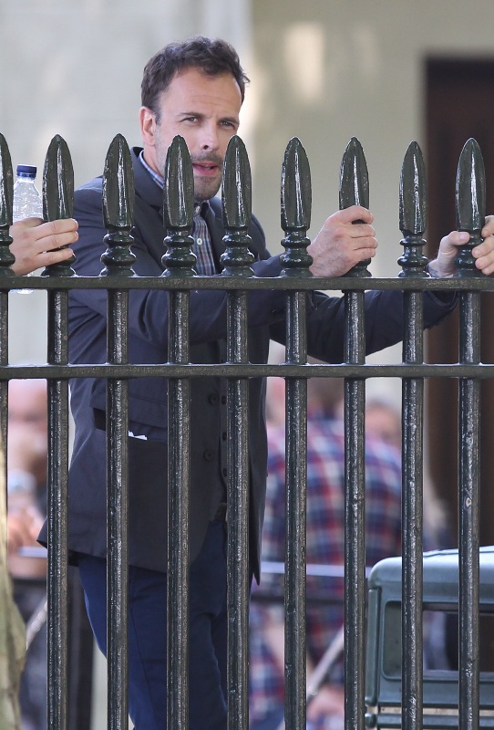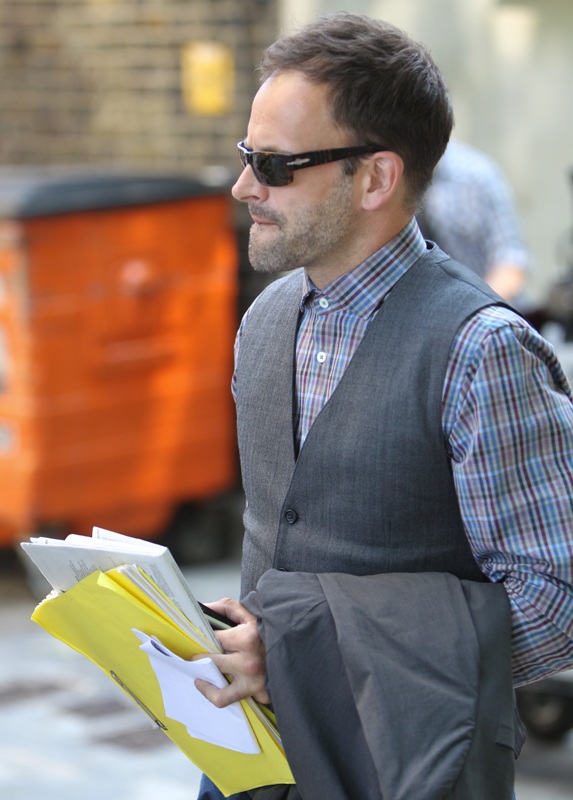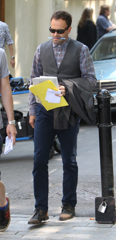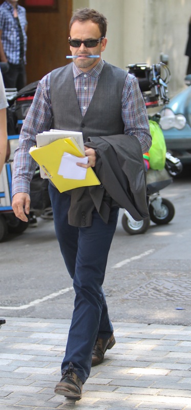 Here’s Jonny Lee Miller on set today. And this is for my cousin Cat who’s into him and into the show and, like many Toronto area residents, is dealing with some sh-t today after yesterday’s heavy rain and flash flooding. Hey but at least it gave the opportunity for Mayor Rob Ford to step up right? Oh, wait, never mind.