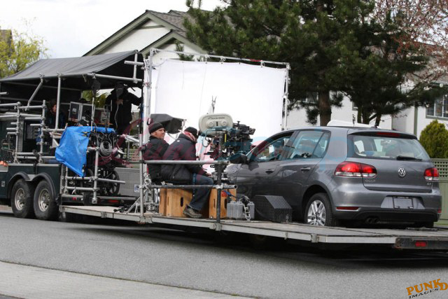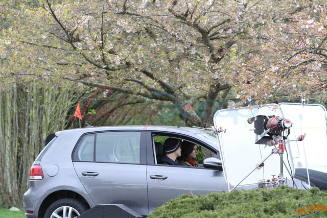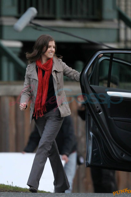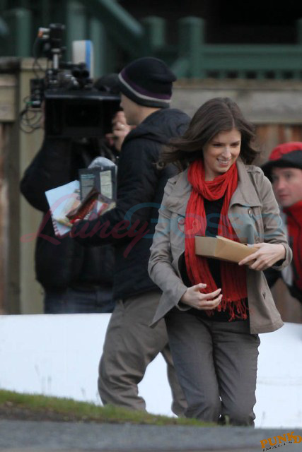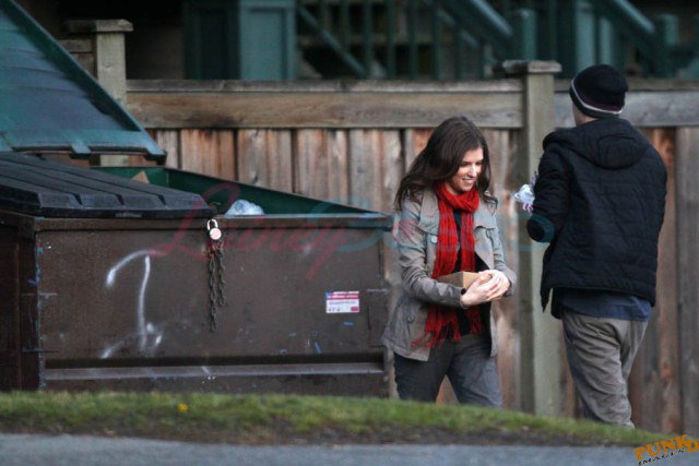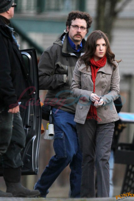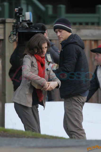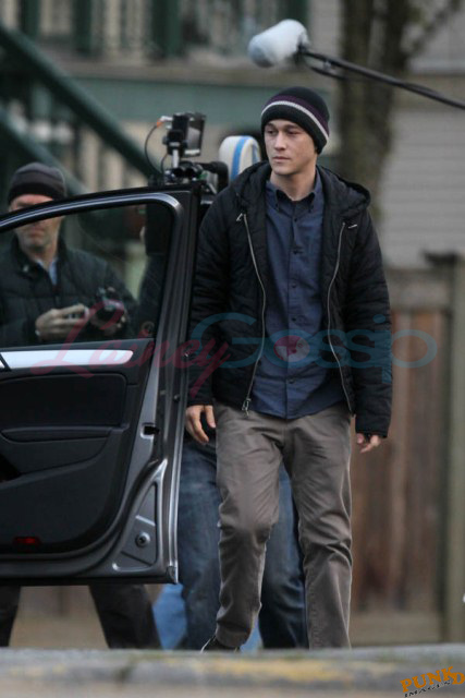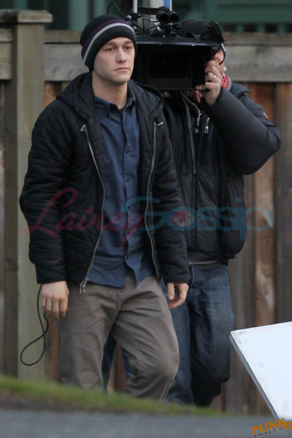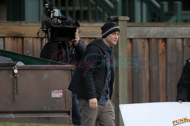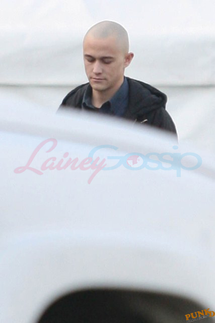 Joseph Gordon-Levitt is currently shooting a movie in Vancouver in which he plays a young writer battling cancer. As you can see, he has shaved his head. In these exclusive images taken yesterday from the set, Joe is working on a scene with Anna Kendrick. They look cute together. Good casting decision after James McAvoy dropped out for family reasons.