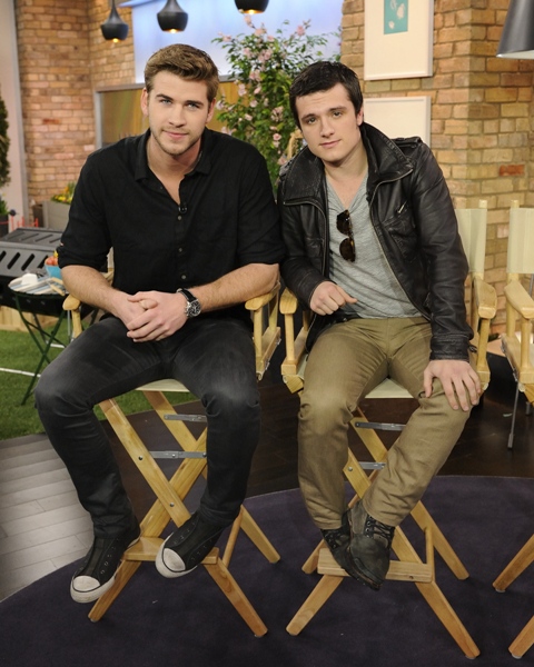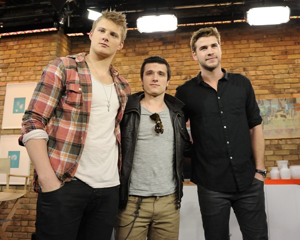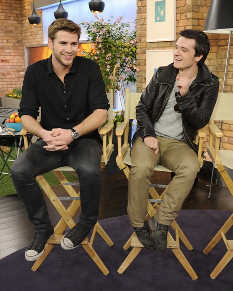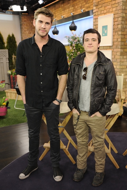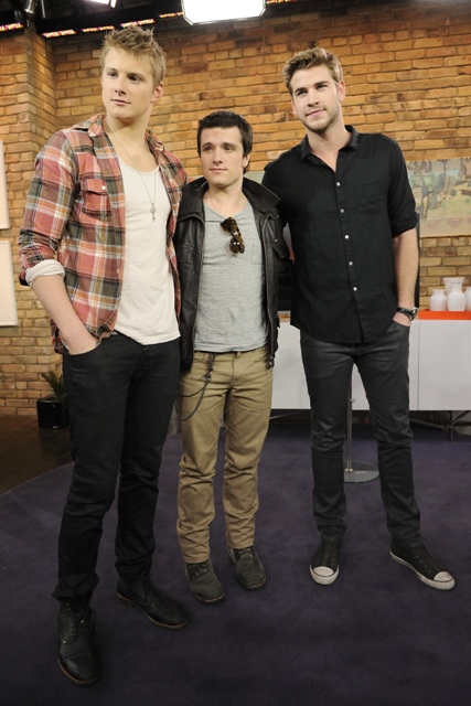 Here are Josh Hutcherson, Liam Hemsworth, and Alexander Ludwig (he plays Cato) on The Marilyn Denis show in Toronto this morning to promote The Hunger Games, obviously. Hutcherson and Hemsworth were paired - and seated - during the junket, and have been, for the most part, assigned on press together. They’ve claimed that they’re close friends in real life; I believe it. When I interviewed them a few weeks ago in LA, it was there: they had an easy rapport, they seemed to read each other well when answering, there was some teasing, the meaning of which only they understood, and even some protectiveness - Josh (who really is SOOOO nice) of Liam, it seemed, as the latter appears to be less comfortable with media than the former. Pairing them is also a natural deterrent to any Miley Cyrus questions which were strongly discouraged and came with penalties.