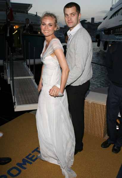 First a private party on a yacht – Josh looking a little pale and pasty and Diane cutting an elegant figure in a beautiful gauzy white dress. They were hand in hand, adorable all night, rarely straying away from each other marking the one year mark of their relationship. You will recall they were first captured on camera in Paris around this time in 2006.