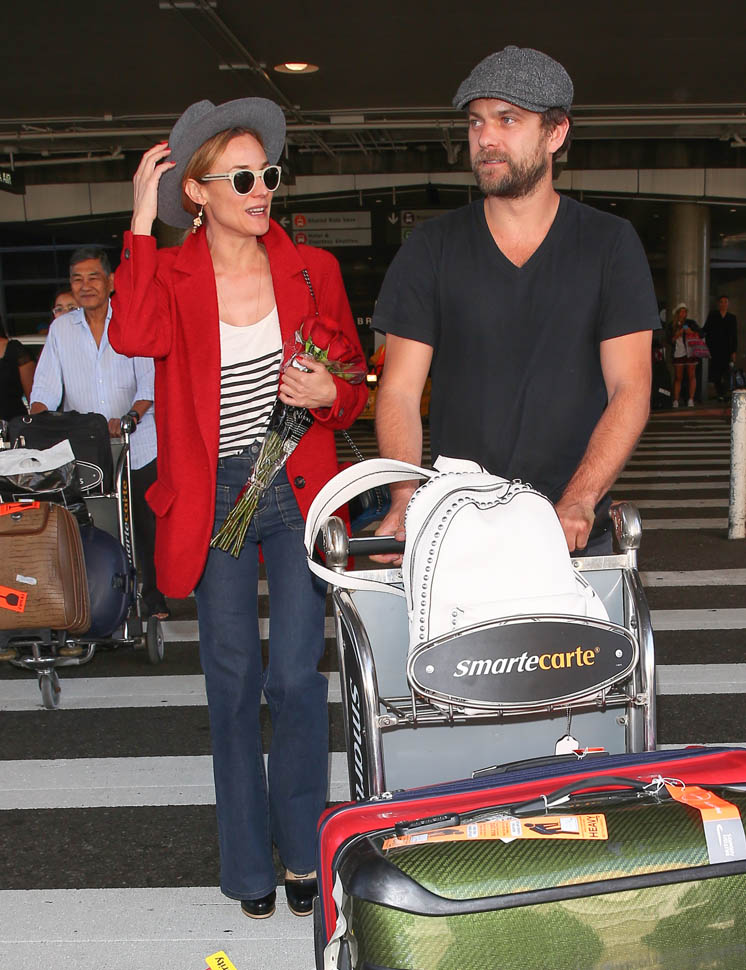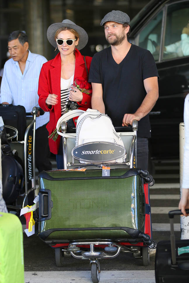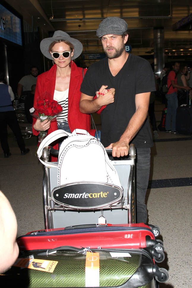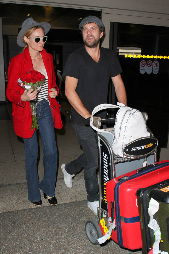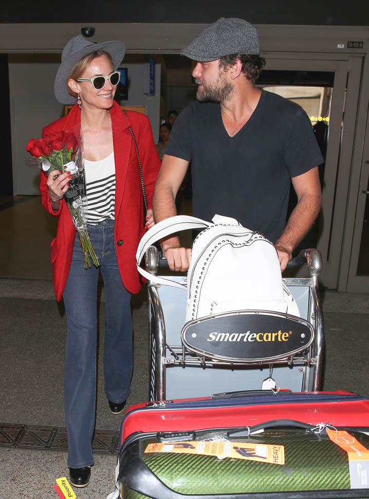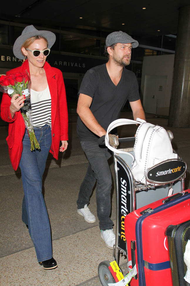 Joshua Jackson picked up Diane Kruger from the airport yesterday in LA. And he was waiting for her with flowers. They’ve been together almost 10 years. Holy sh-t they’ve been together almost 10 years. And the welcome home flowers are still happening.