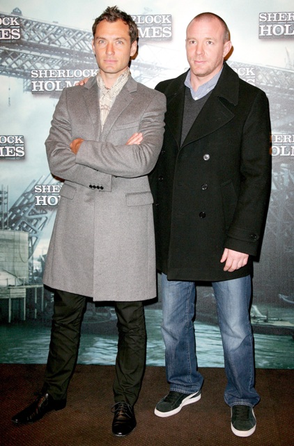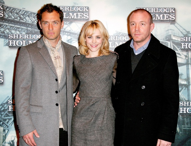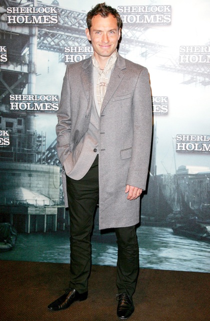 Not sure where RDJ is at the photo call for Sherlock Holmes in Paris today. In his stead, the film was represented by Rachel McAdams, Guy Ritchie, and his totally platonic soulmate Jude Law. A very tanned, very orange Jude Law but a very pretty one nonetheless. He’s gorgeous. And seeing Jude today reminds me that we haven’t seen Sienna Miller in two weeks now. The two hooked up on holiday in the Caribbean and since then it’s been all undercover. Far as I know they’re still f-cking. But you know Sienna. Actually, you never know Sienna.