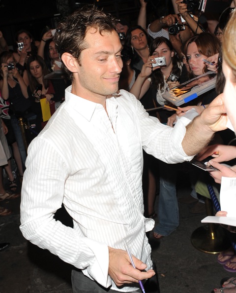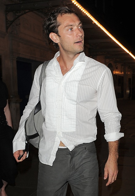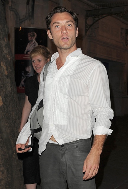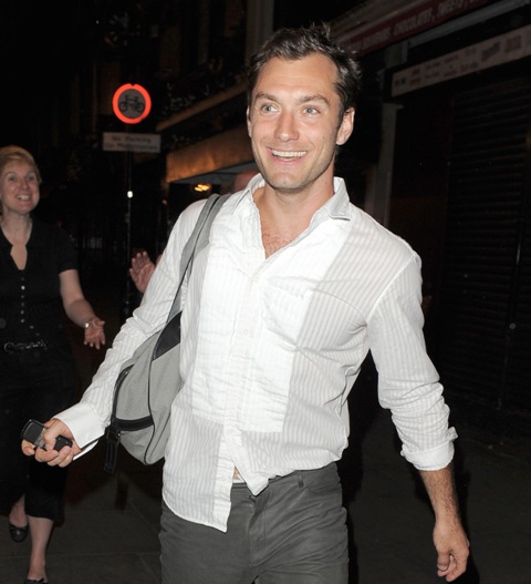 These are happy days for Jude Law. He’s receiving rave reviews for his Hamlet – just announced: the production will be staged on Broadway this fall – and he just finished work on a big budget movie that’s hoping to dominate the holiday box office, and the squiggle on his head doesn’t seem to be thinning anymore, and…