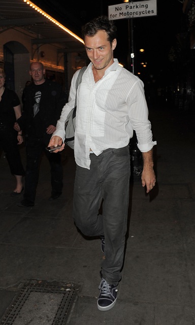 Last night after his performance, Jude took a lady out for dinner. They only stayed an hour before heading out - she’s covering her face but you can tell, she’s very, very attractive. Which is why he was smirking after putting her in his own car and waiting 10 minutes before heading off the paps to meet her somewhere else.