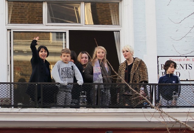 Anyway, Jude was out really late with Sienna Miller the night before – click here for photos – so they’re still together, back together for over a year now, and it’s fine between them, but as you can see, she was not present for the family gathering, not because it was family only (there were several friends present) but because the Ban is still in effect.