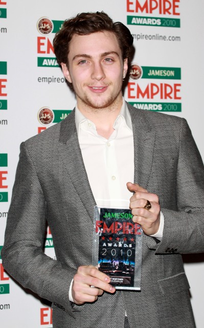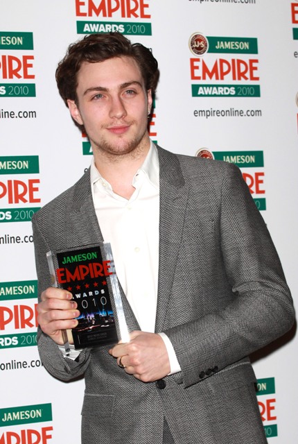 And finally Aaron Johnson received the Best Newcomer Award accompanied, of course, by my current obsession Sam Taylor-Wood, his expectant fiancée. Personally I find the posing with the hand on the pregnant belly, um, not appealing. Why is it a pregnancy standard? Does it signal virility and ownership? Gross.