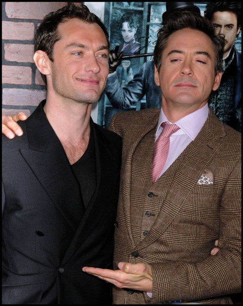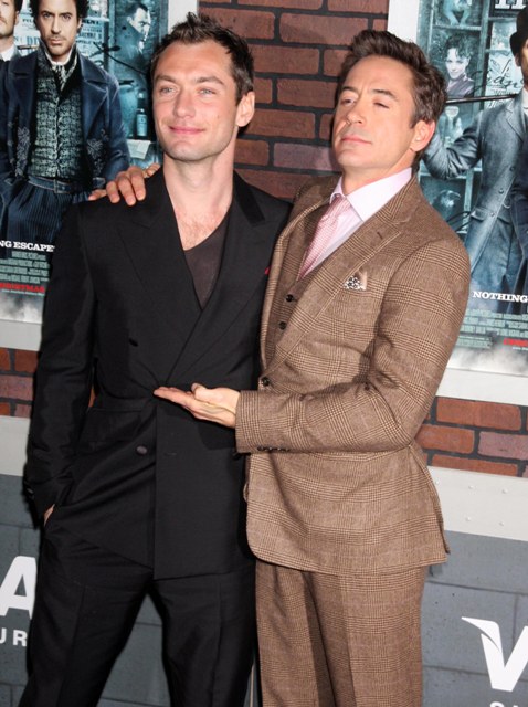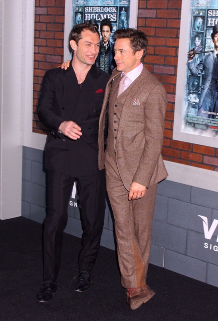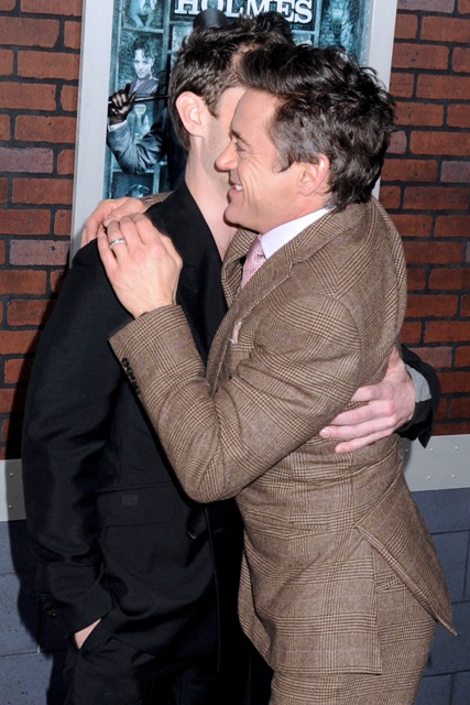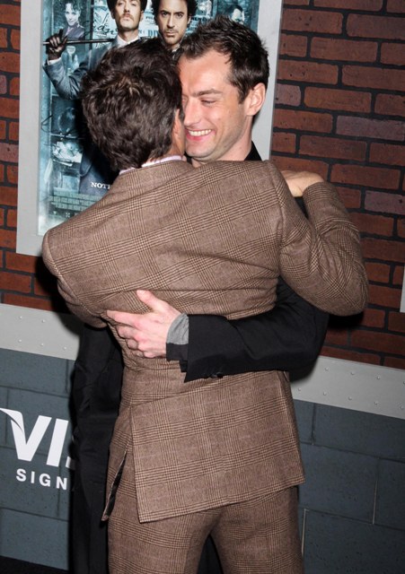 It’s the chemistry between RDJ and Jude Law that is apparently the film’s strongest feature. I believe it. By all accounts, they seem to be close and last night on the carpet, the bromance was cranked up high. Cute, non? RDJ is a very physical person. He likes to touch and wrap and nuzzle. This is not a riddle hint at all. Simply an observation – Colin Farrell is like this too. I have personal space issues and don’t like when people cross mine. Coming from RDJ and/or Colin though, I’m willing to make an exception.