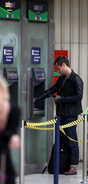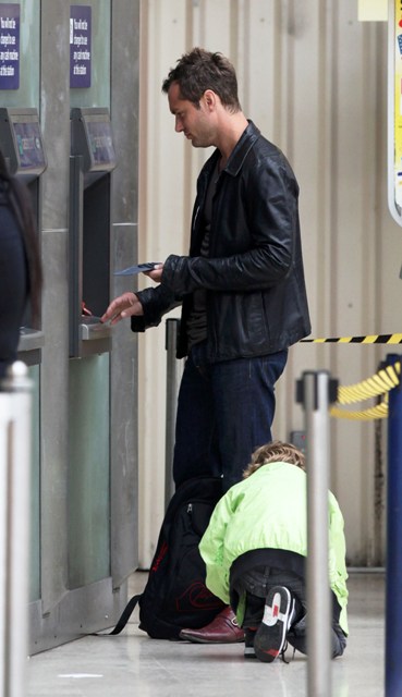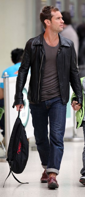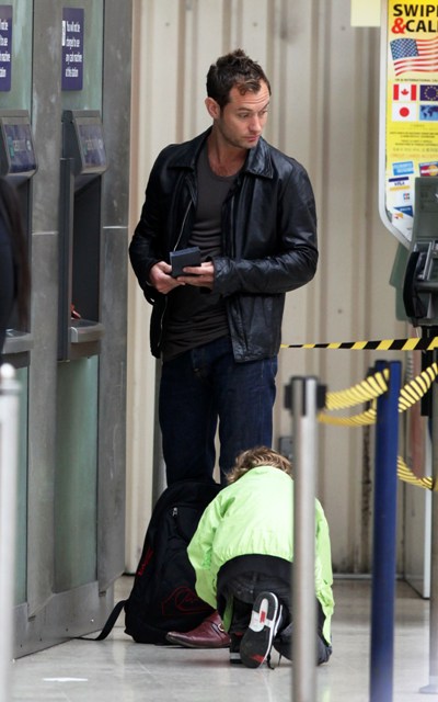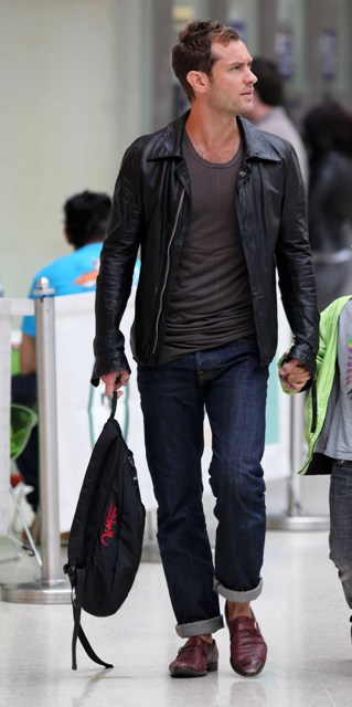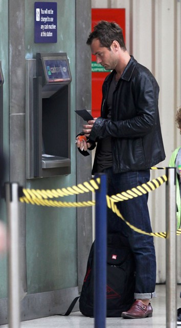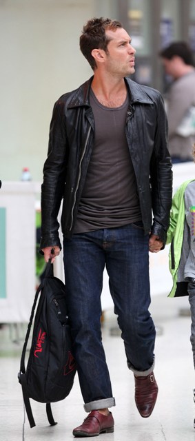 Well, not really. He’s just walking through Waterloo station with his children in his leather jacket and rolled up jeans with no socks and that little head squiggle all messed up. The photo agency is noting that Jude seems tired. It was his turn with the kids this weekend then, non? Sometimes it seems he has, like, 40 of them. And then of course there’s Sienna management. Miller has turned down her crazy these days, sure, but it’s never completely quiet.