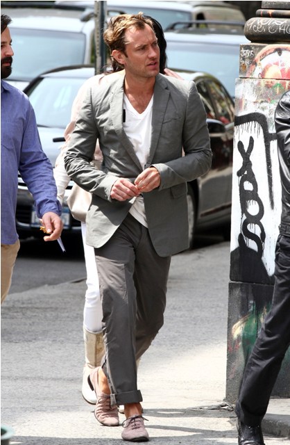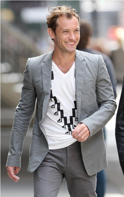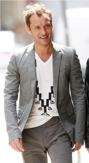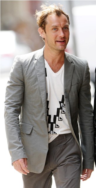 Yeah I don’t like what he’s wearing either. But there’s assy style and different style. Assy style is Tom Cruise. Tom Cruise cannot dress. His clothes are suck. With Jude it’s not a matter of assy style so much as a matter of North American style preference or, some would argue, lack thereof. My father in law, Polish, wears speedos. You know. And he thinks North American men in long shorts at the beach is totally low classy. And stupid. In fact, he’s very vocal about the stupid part. Because why go to the beach and cover half your body?