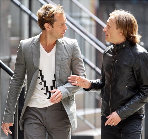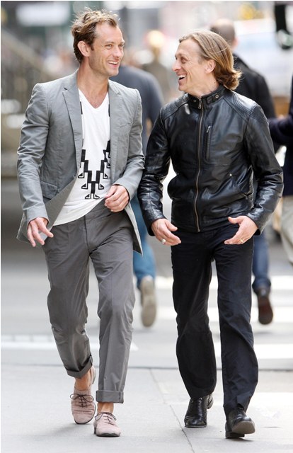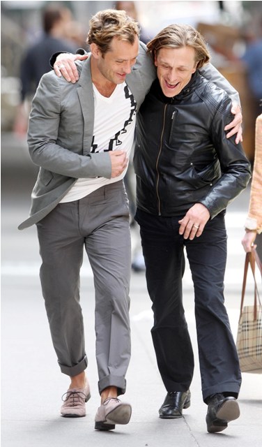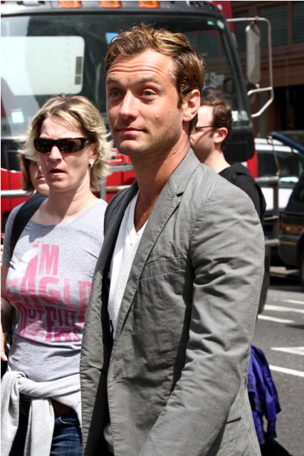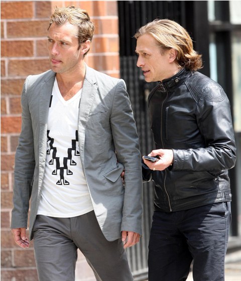 After a few days of gorgessity in LA with Sienna Miller, Jude Law is now in New York, seen walking jovially with a friend in Soho yesterday. Photo Assumption says Jude is happy. Happier than he’s been in a long time. Happy because he’s happiest with Sienna. Happiest and, as noted, prettiest with Sienna. And most of us have been there before: when you’re happy in love, it can affect other parts of your life, it can improve other relationships...