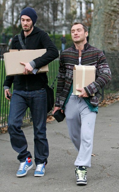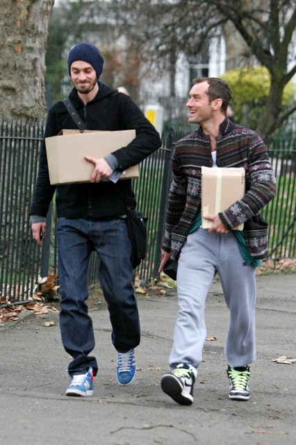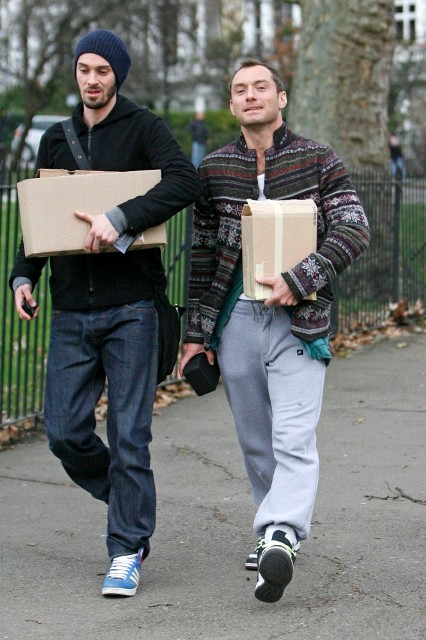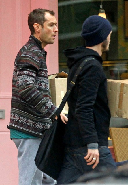 As you know, I’m all over it when Jude and Sienna make love to my eyes with their pretty. As you can see, Jude’s pretty decided to take a day off. The hair issue is a problem for me. The sweats aren’t working. And the assistant is so tall, it makes Jude look Frodo-sized.