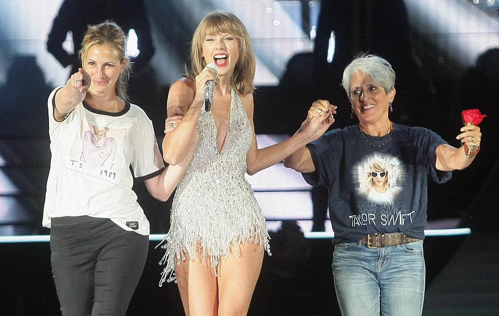 Taylor Swift played two shows in Santa Clara this weekend, getting ever closer to the five performances she’ll put on at Staples Centre in LA starting on Friday where the Friend Collecting is expected to be major…if Santa Clara was any indication. Because Joan Baez and Julia Roberts are pretty f-cking major.