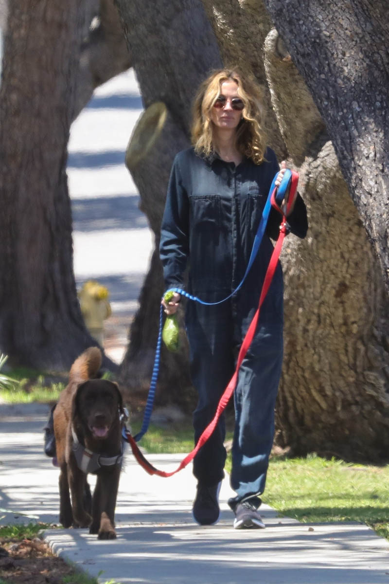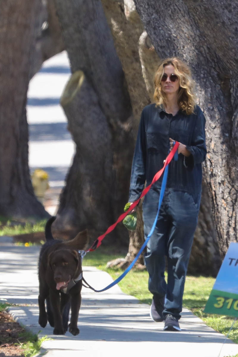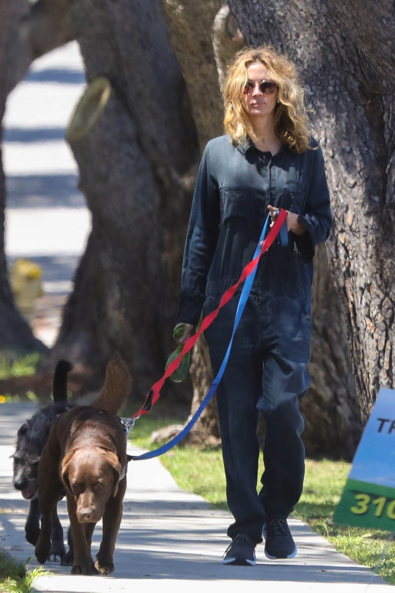 Julia Roberts was photographed out in LA yesterday walking her dogs. A lot of people have been talking about hair maintenance right now during the lockdown. Julia clearly has no issues with this, her hair looks amazing – and if you didn’t know that this was 2020, you’d believe it was 2010 or 2000. She is a constant.