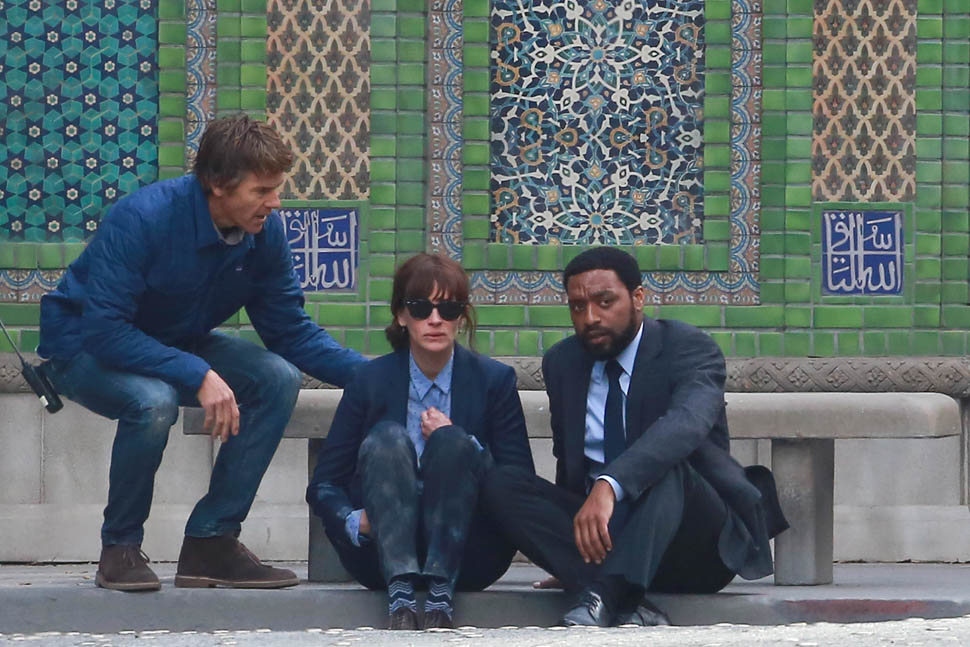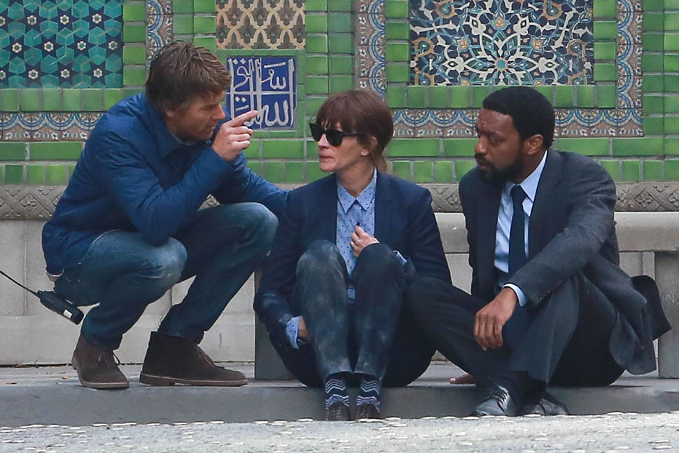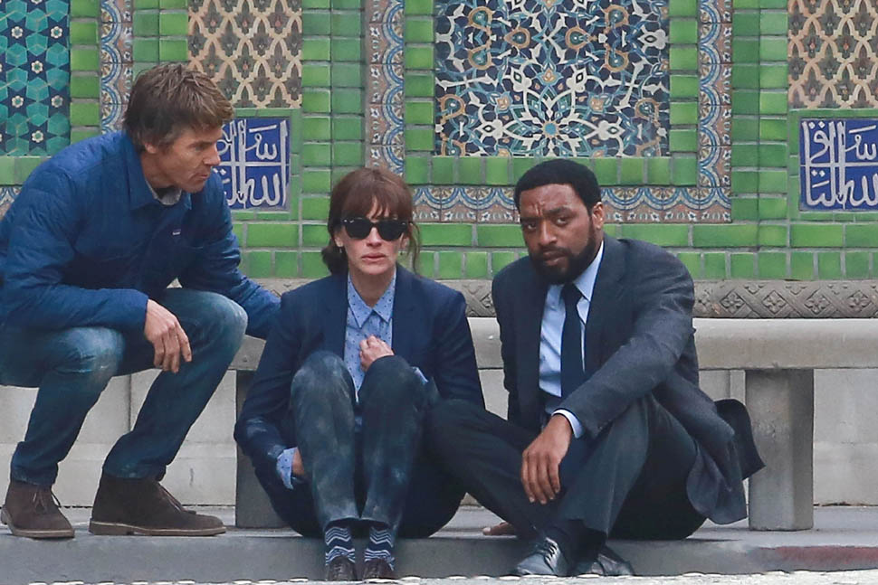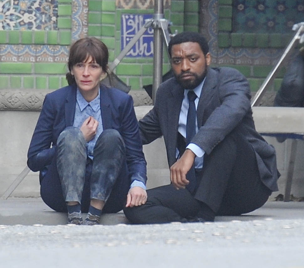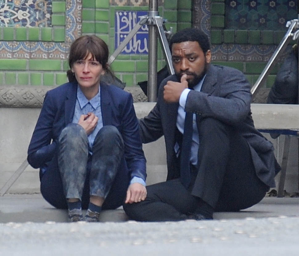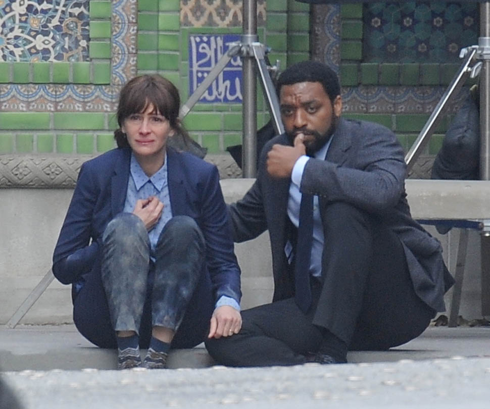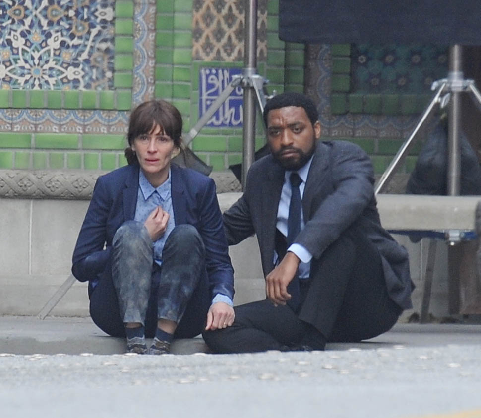 Julia Roberts and Chiwetel Ejiofor were papped while shooting an emotional scene from The Secret In Their Eyes yesterday in LA. At some point, her husband, Danny Moder, who is also working on the film, came over to give her some instruction, likely technical. Because she doesn’t need any tips on how to cry on camera.