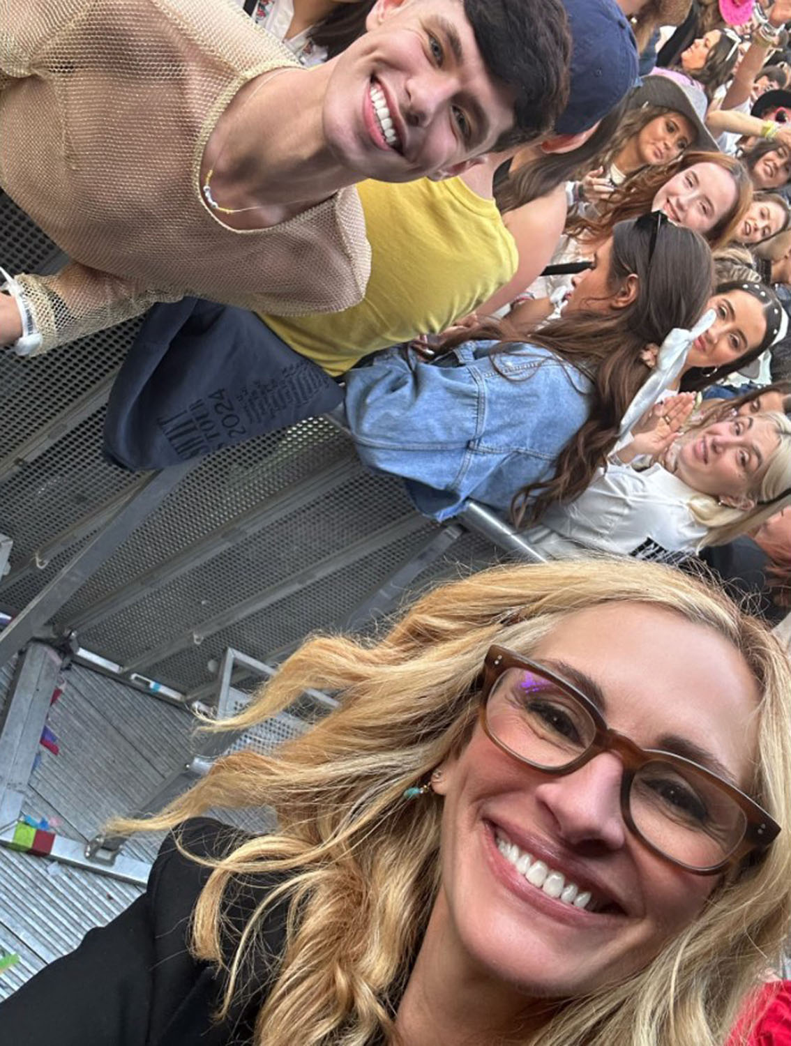 What popped off this weekend, however, doesn’t have to do with Taylor, it was another VIP in the tent with Travis, who flew in to Dublin to see Taylor’s show after attending a wedding on Saturday in the US. Julia Roberts also happened to be at the show and this interaction between Julia and Travis is sending me…
