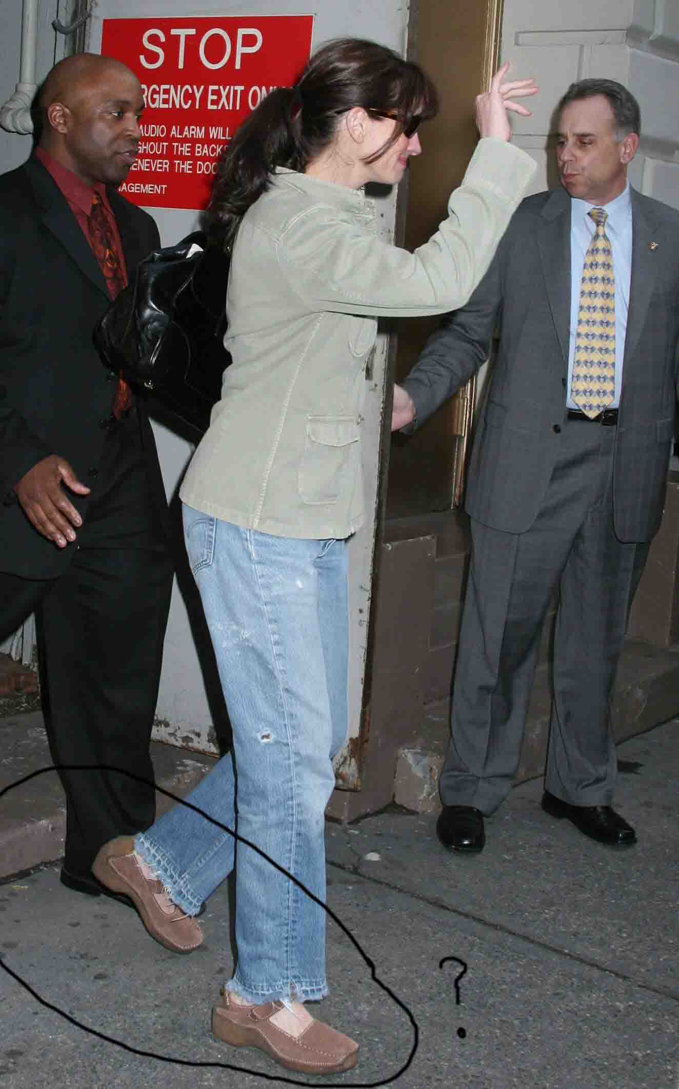 Ummmm…was her posture always this bad? Why does she walk with her ass out all the time? Is this the reason for the bad back granny shoes? Look, I"m all for comfort but when you"re as rich as Julia Roberts, believe it or not, fashion AND function can actually co-exist. Keep this up and that little cameraman she married just might stray his way out of her bed. Not like he"s never cheated before, right?