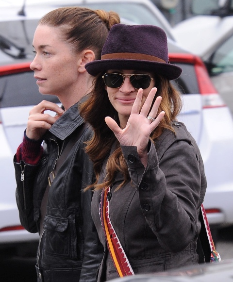 Julia and Julianne were out with Ewan McGregor and Dermot Mulroney yesterday in LA. They all recently worked together on the upcoming August: Osage County which everyone is predicting already for Oscar next year because of the cast which also includes Meryl Streep, Chris Cooper, Sam Shepard, and more. And it was produced by George Clooney.
