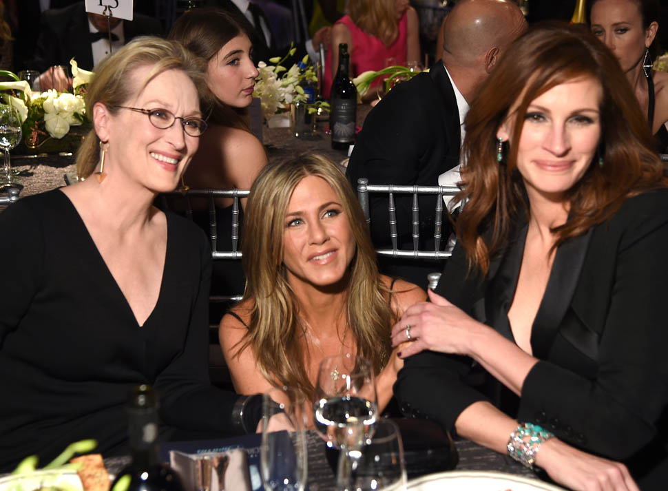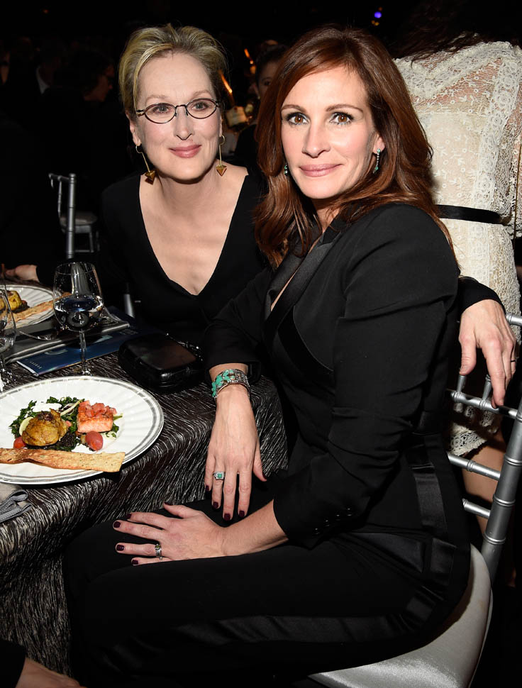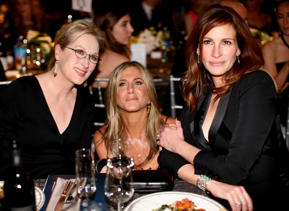 Julia Roberts attended the 21st Annual Screen Actors Guild Awards with Meryl Streep, Jennifer Aniston, and Maggie Gyllenhaal.Photo credits: Christopher Polk/ Frazer Harrison/ Rich Polk/ Kevin Mazur/ C Flanigan/ Dimitrios Kambouris/ Getty Images