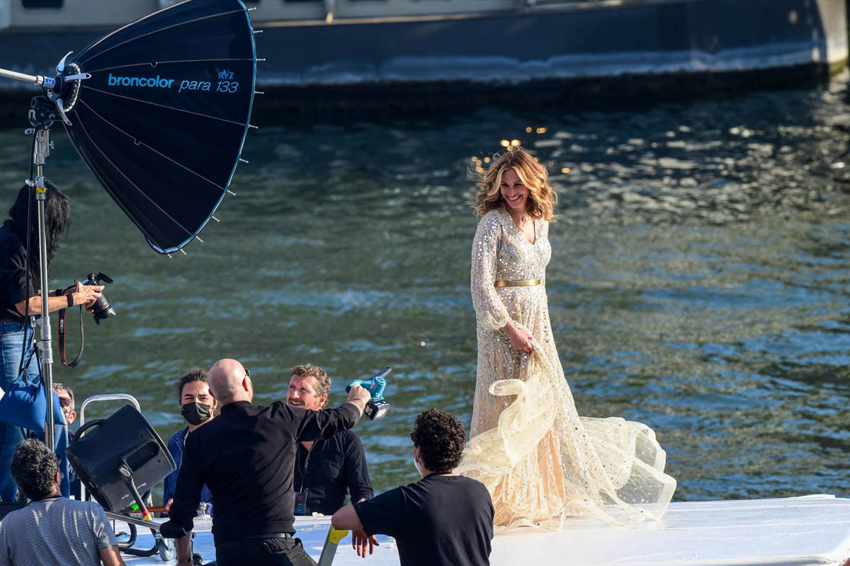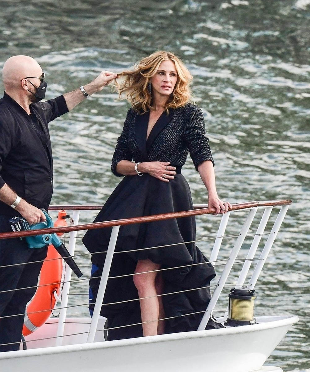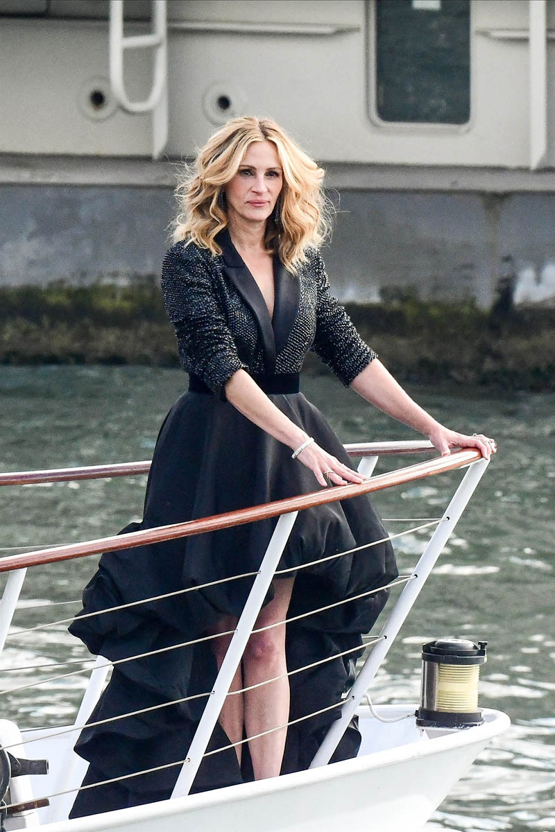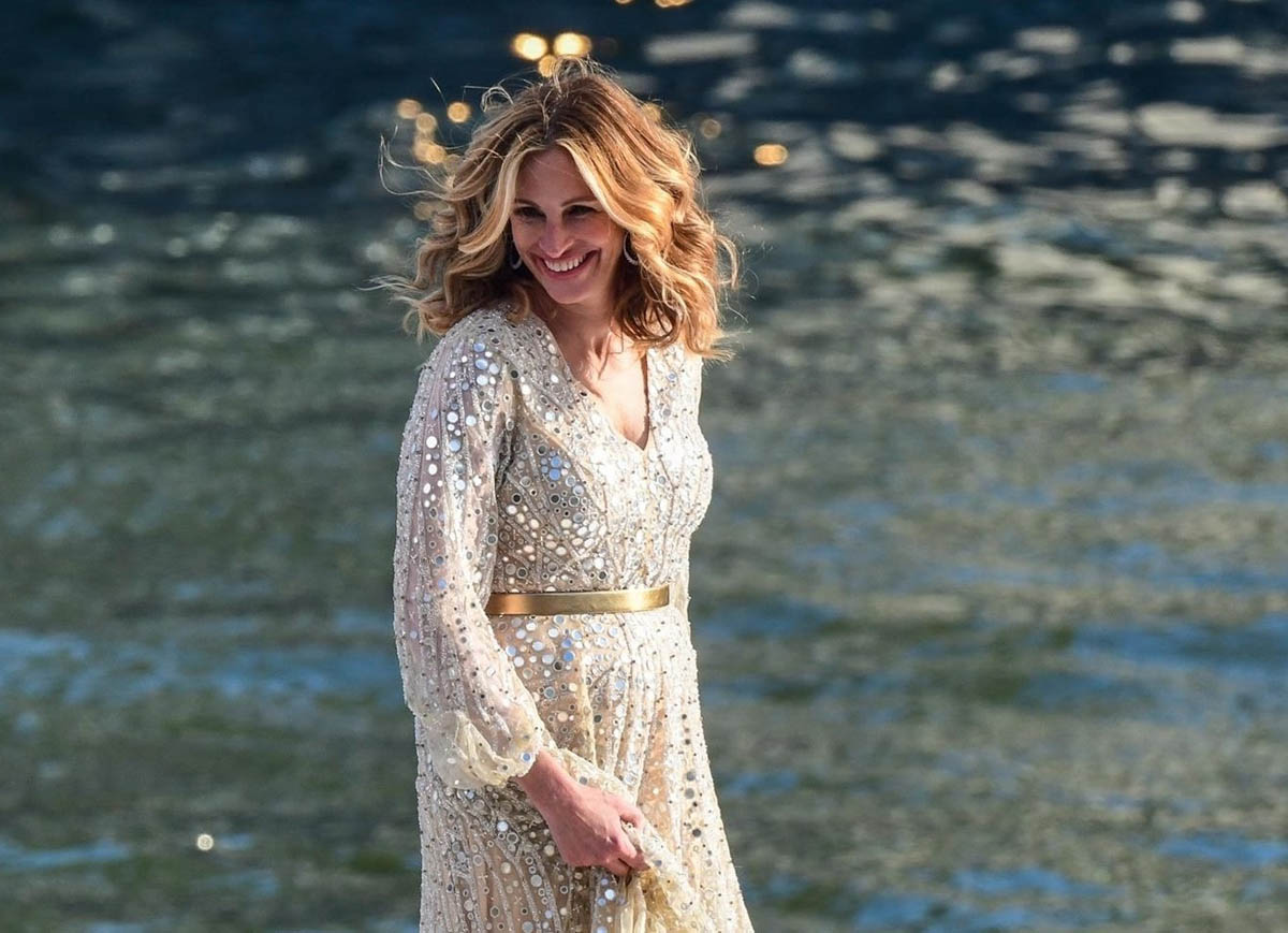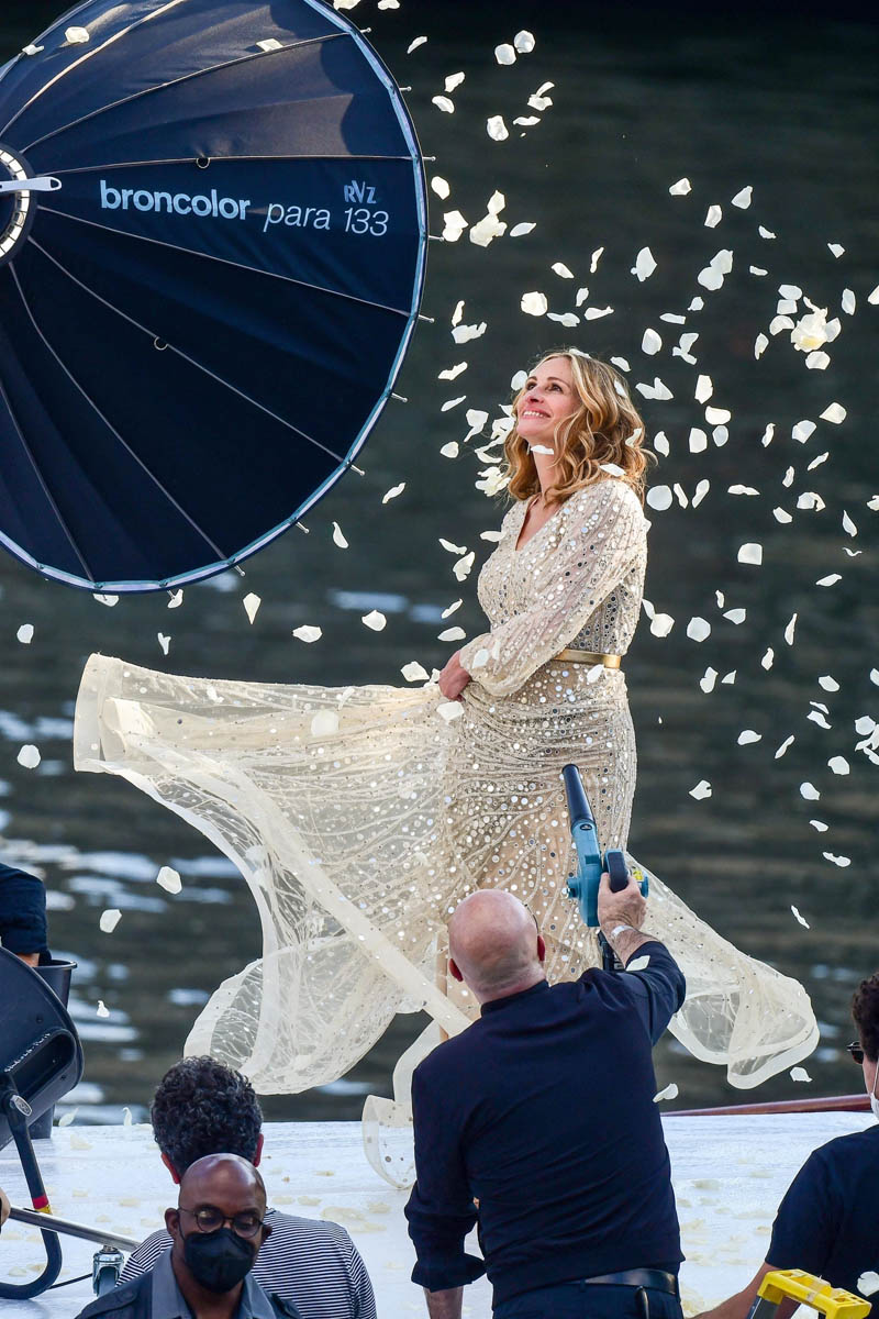 Look at this Carolina Herrera dress. Does it remind you of another famous dress? It’s not exactly the same, not at all. And you might not even say it’s “inspired by” either. It’s just… they could be related. Julia Roberts, Valentino, remember? When she won her Oscar? Julia, by the way, is currently in Paris shooting a new ad for Lancome. She looks so glorious I had to attach them to this post. (Go Fug Yourself)