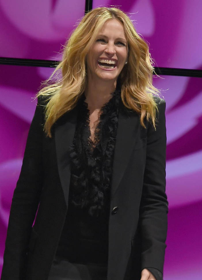 These are the Lancome ambassadors: Isabella, Julia Roberts, Lupita Nyong’o, Kate Winslet. Julia had to be in the middle on the carpet, obviously. And at one point, she had to behave like she was laughing about something we wish we could be a part of, obviously. But that’s the point of photo opportunities like this – you’re supposed to want to be there, to be them, at least around them. She was Taylor Swift before Taylor Swift knew how to be Taylor Swift.