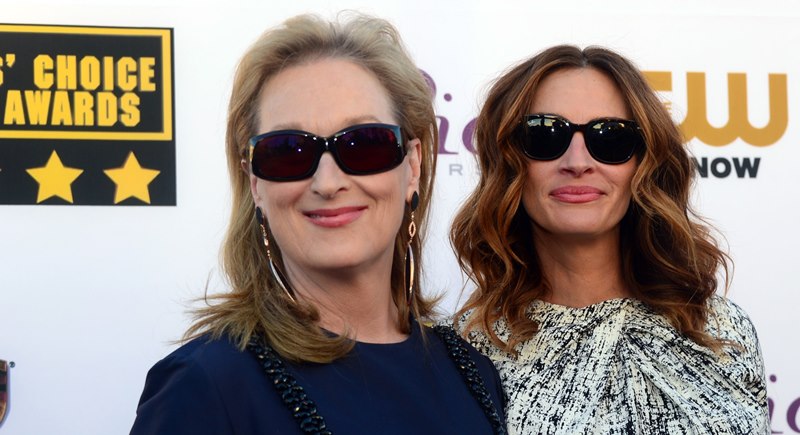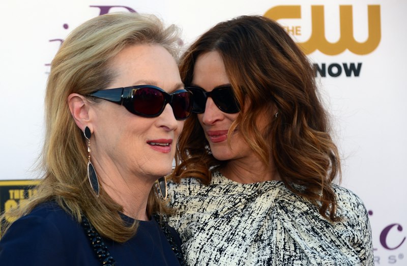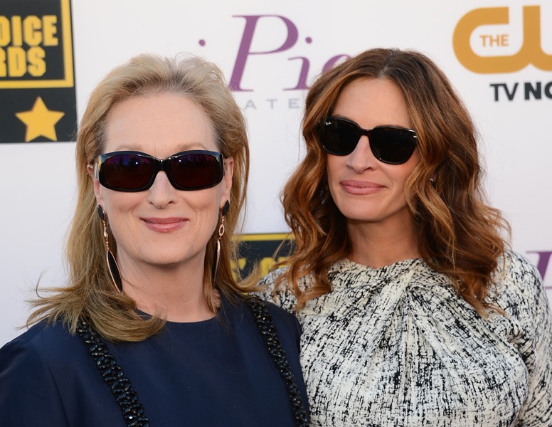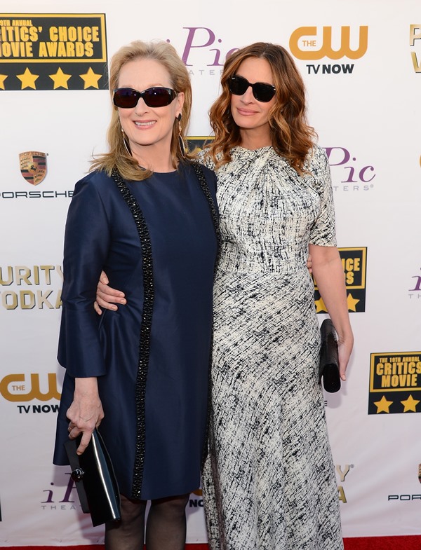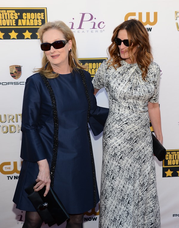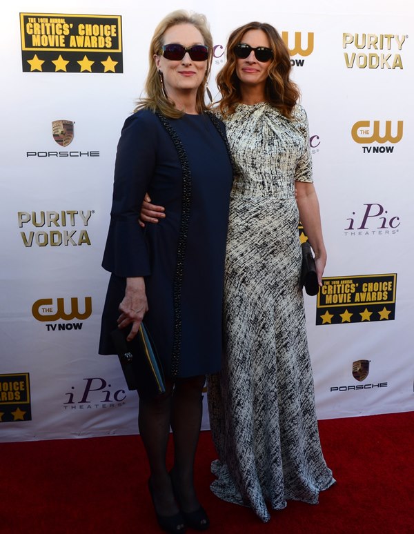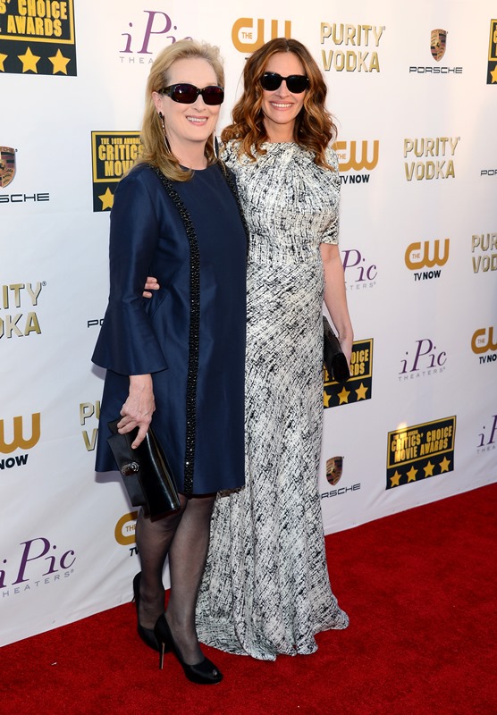 Julia Roberts and Meryl Streep were pretty tight last night at the Critics’ Choice Awards. They were on the carpet together, they sat together, they hugged several times, and for the most part, on those occasions, Julia held down The Julia, because even Julia knows that Julia < Meryl Streep.