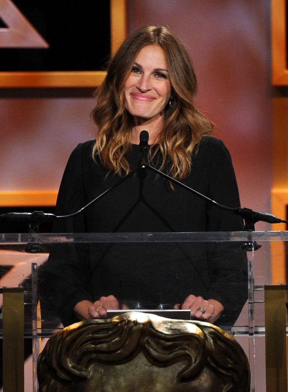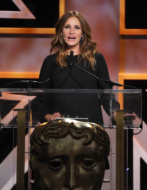 Of course Julia had to take her shoes off – again – at the BAFTA LA Brittania Awards while presenting to her friend George Clooney. Of course she did. Of course she had to make her speech mostly about how she didn’t understand why he, an American, is receiving the Brittania Kubrick Award: