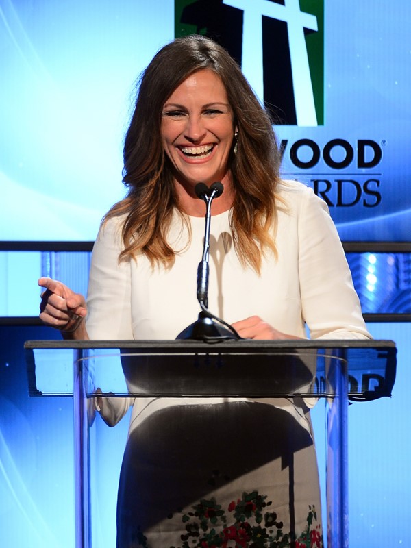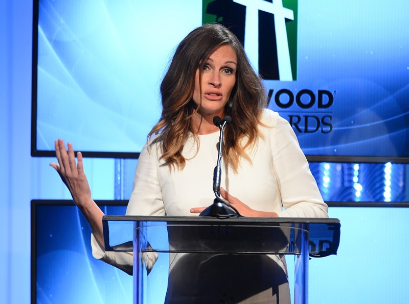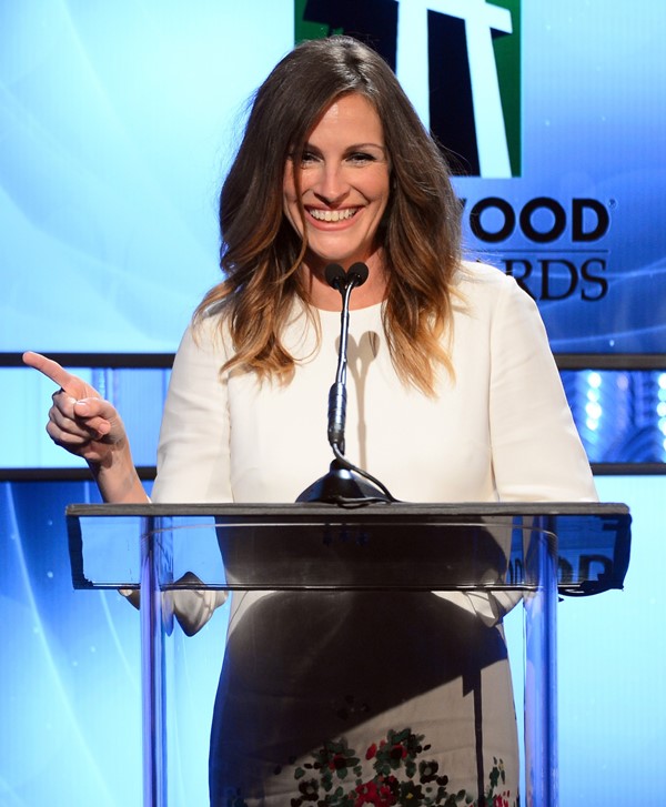 Julia Roberts was honoured with the Hollywood Supporting Actress Award last night at the Hollywood Film Awards. Sean Penn was her presenter. He was in a good mood for her. And when she went up on stage to accept, she took her shoes off.