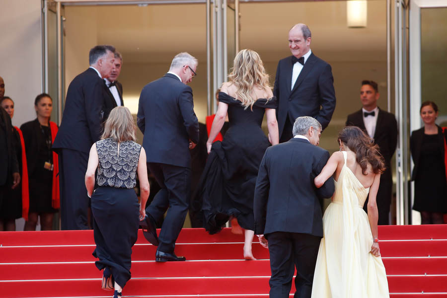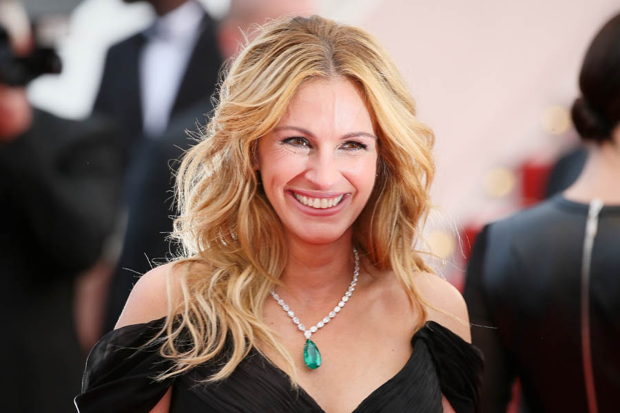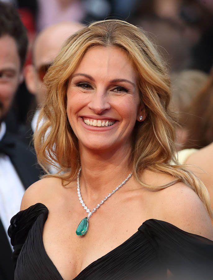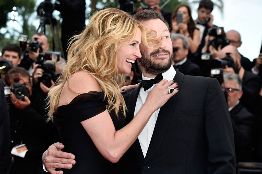 As already mentioned, it was Julia’s first Cannes. She made her first trip up those famous red steps…without shoes on. This is notable because in Cannes they have a strict dress code about women’s footwear and there was controversy last year when festival organisers turned away women in flats. So many are interpreting Julia barefooting it to be a statement about the festival’s policy which… it may have been a statement but will it really change anything?