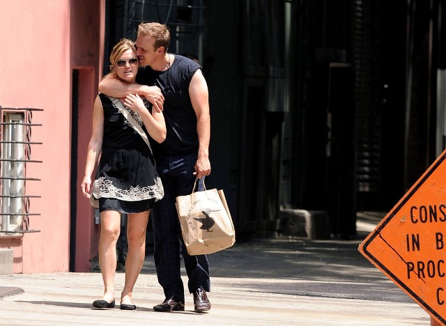Check out Julia with her new man, actor David Harbour, unable to contain themselves in New York yesterday. Julia and David just worked together on a movie called Between Us. This relationship appears to be a lot less fraught with drama and awkwardness and ex-wives on the set.