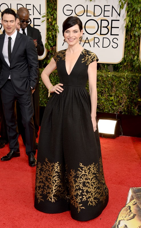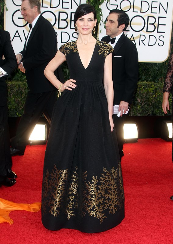Julianna Margulies has made a career out of very interesting, very structured or otherwise unusual dresses. I was about to write “Remember the lampshade one” but I think that in fact there have been several that could be described that way.