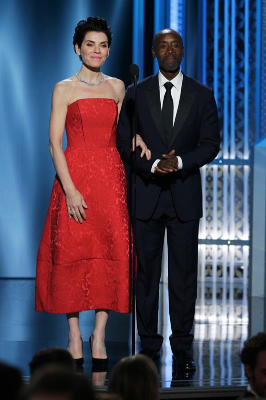 Right? Like the dress was offbeat, and I know there were a few tea length dresses tonight, but none of them really landed. And there are increasingly loud rumours about Margulies wearing a wig on The Good Wife and thus you’d think her own hair would be more prepared for an event like this…