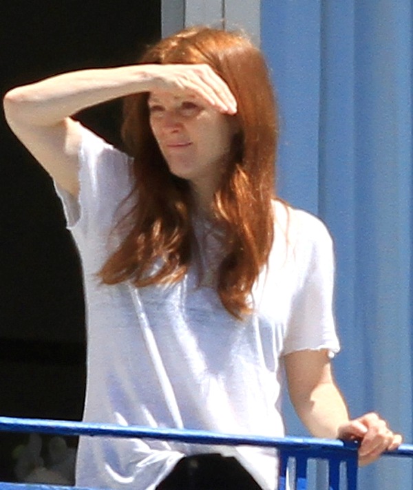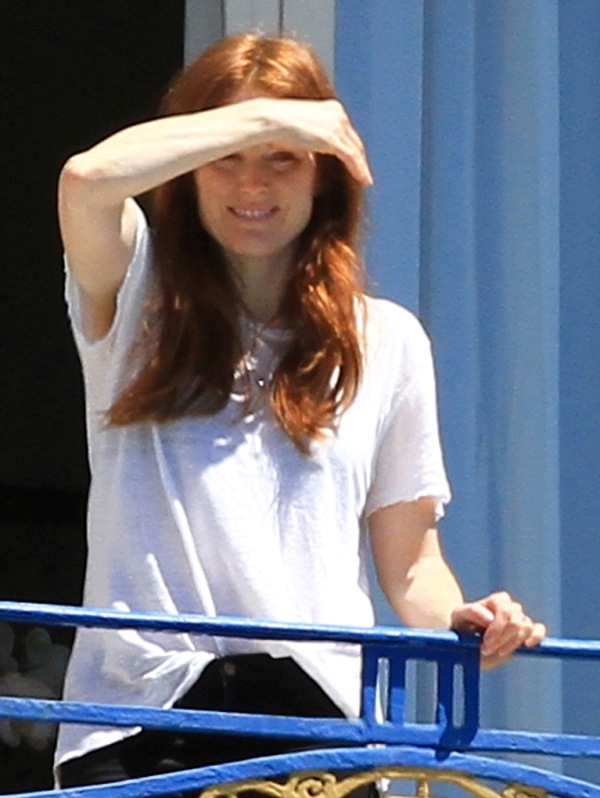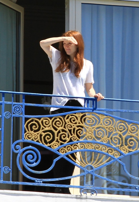 The Cannes Film Festival begins on Wednesday. Sarah from Cinesnark will have a preview of this year’s festival coming soon. In advance of The Great Gatsby’s big opening on Wednesday, many celebrities are starting to arrive. Julianne Moore is already there and was seen on her balcony at the Hotel Martinez today. Last time Julianne was in Cannes I *think* it was for Blindness? Or did A Single Man go to Cannes? I don’t remember it...