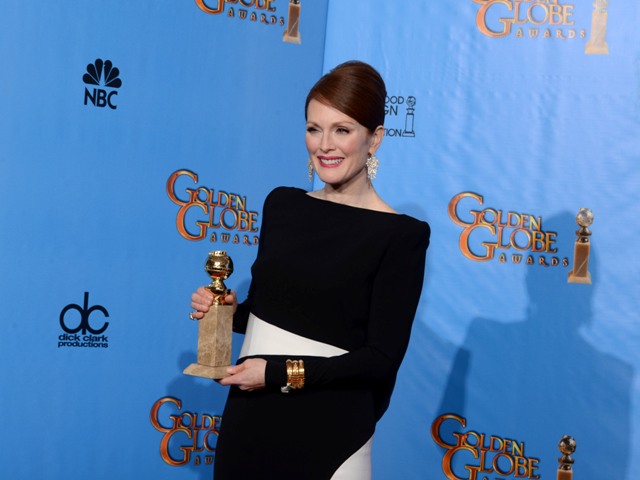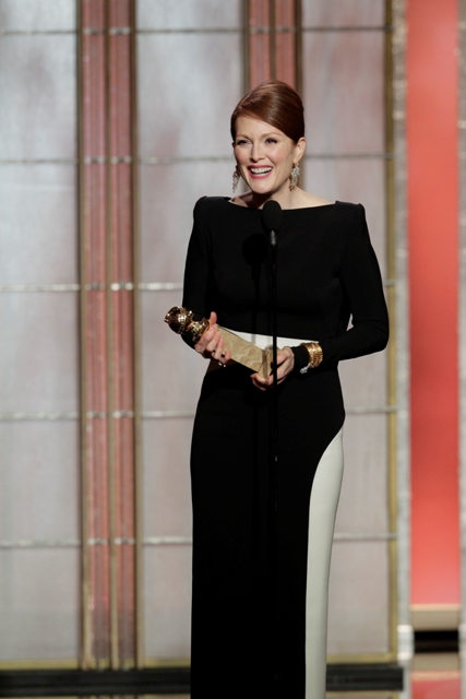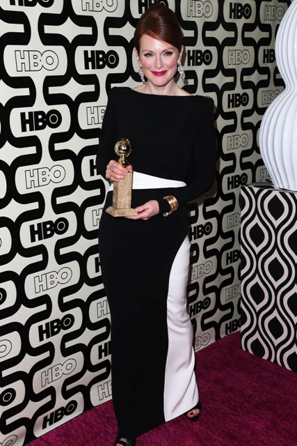 So she just emailed Tom Ford and asked him to make her a dress. And he did, using the hard shoulders from Gwyneth Paltrow’s white Oscar cape but making black the main focus, with white accents to flatter. How great does that look from the side, where the white cuts into the leg and gives you the illusion that it might be a pair of pants? And the back. Look at that back. Like...lapels on a tuxedo. A penguin in a tuxedo! How can you not love it?