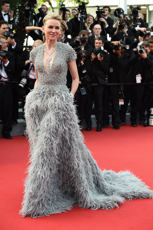 Unlike Naomi Watts’s. The vibe is similar…but when you put the feathers on the skirt, I’m thinking about 2005, not 2015.